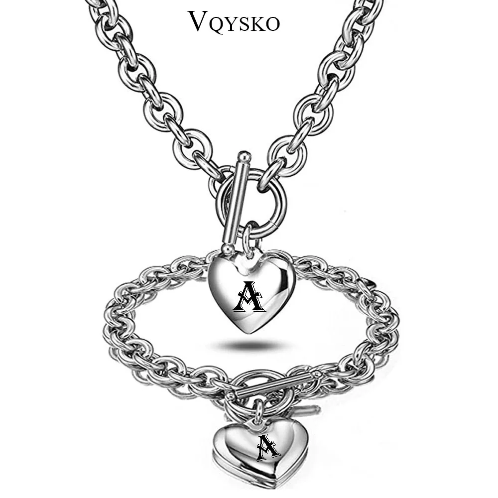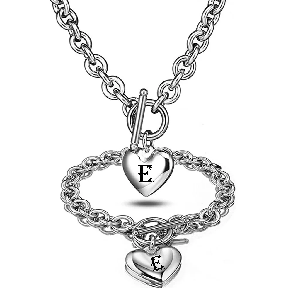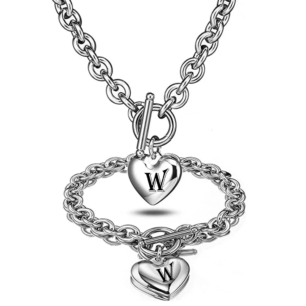 Набор женских ювелирных изделий, ожерелье и браслет с подвеской в виде сердца, из нержавеющей стали, белого цвета, Подарочные ювелирные изделия, наборы цепочек