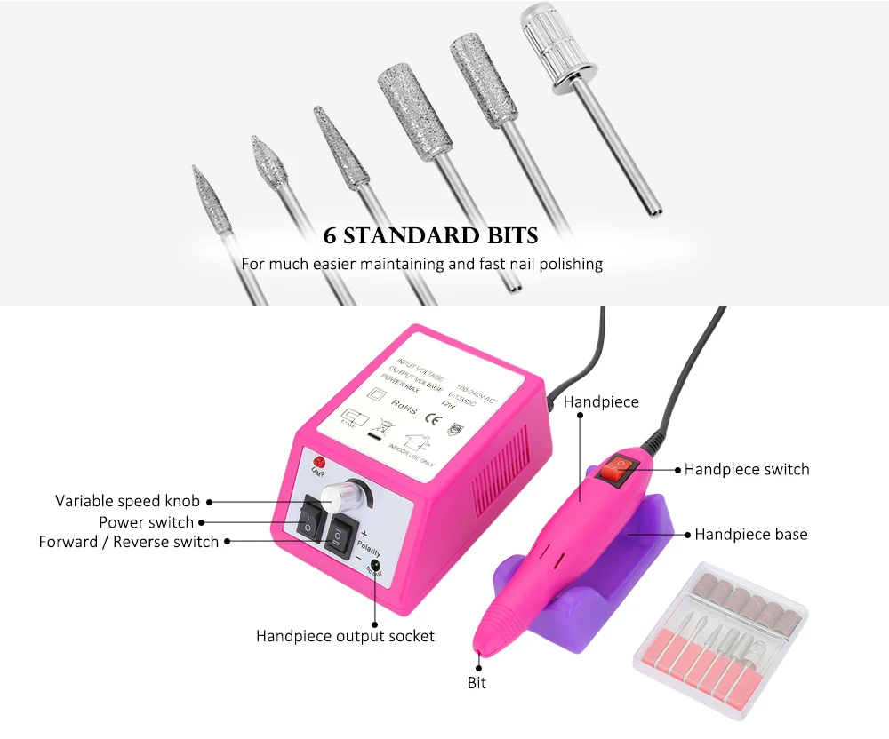 20000 об./мин. Профессиональная электрическая маникюрная дрель 6 в 1, набор сверл для маникюра, педикюра, шлифовальное оборудование, инструменты для маникюра