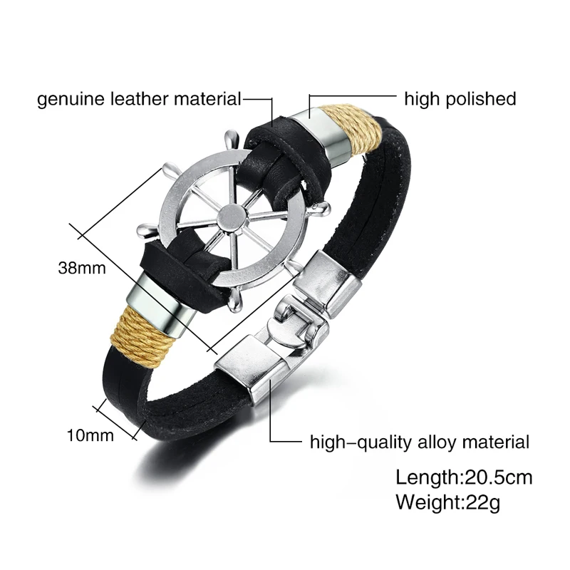 Браслет со штурвалом мужской, Двухслойный Кожаный классический винтажный спортивный браслет, ювелирные изделия