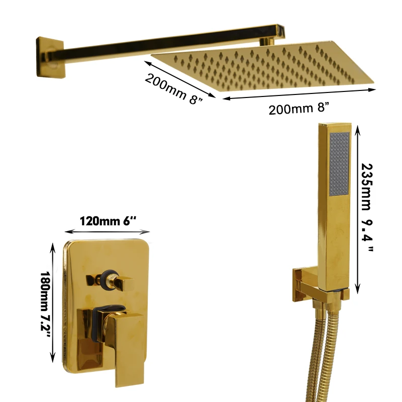 KEMAIDI Золотые Смесители для душа с настенным креплением, набор ультратонких золотых смесителей для душа, для горячей и холодной воды