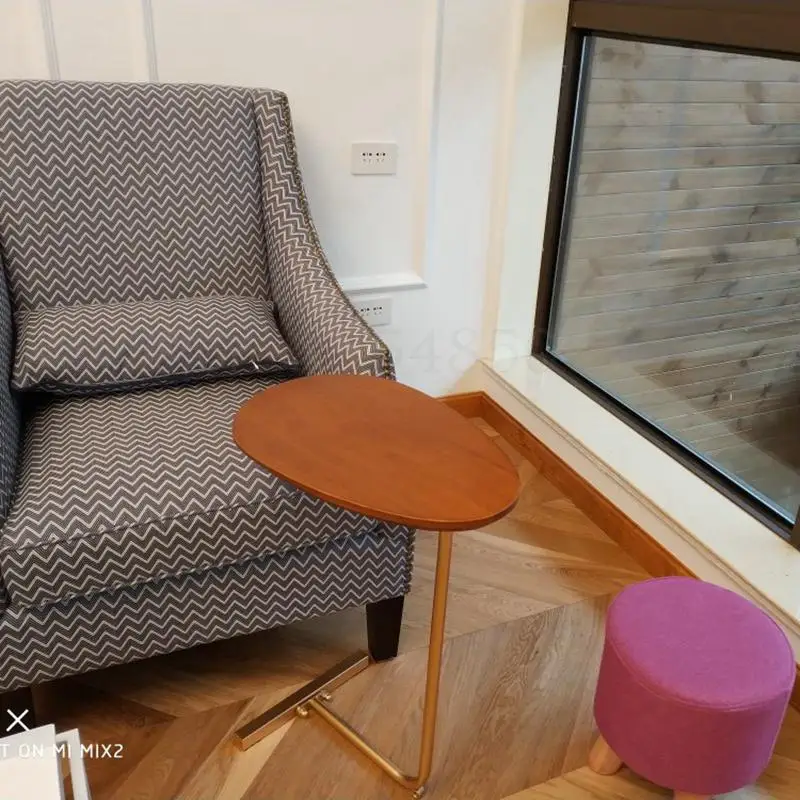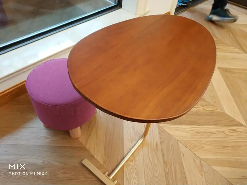 Креативный простой Овальный Маленький журнальный столик, мобильный Железный угловой столик из массива дерева для дивана, ленивый прикроватный столик для чтения