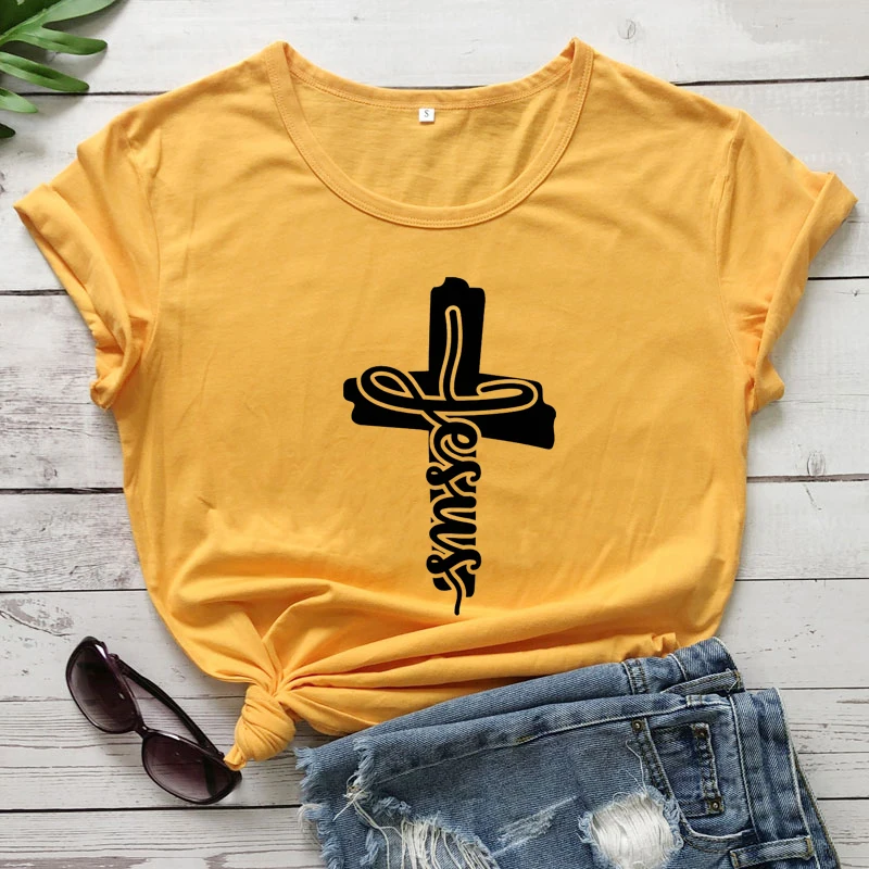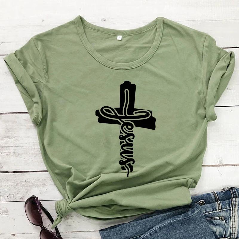 Футболка женская Повседневная из 100% хлопка с принтом Иисус крест