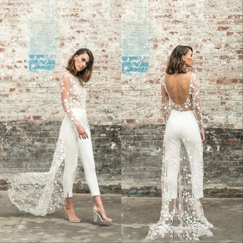 Дизайнерский комбинезон, свадебное платье, сексуальное прозрачное кружевное пляжное свадебное платье, сексуальный комбинезон с открытой спиной в стиле бохо для невесты