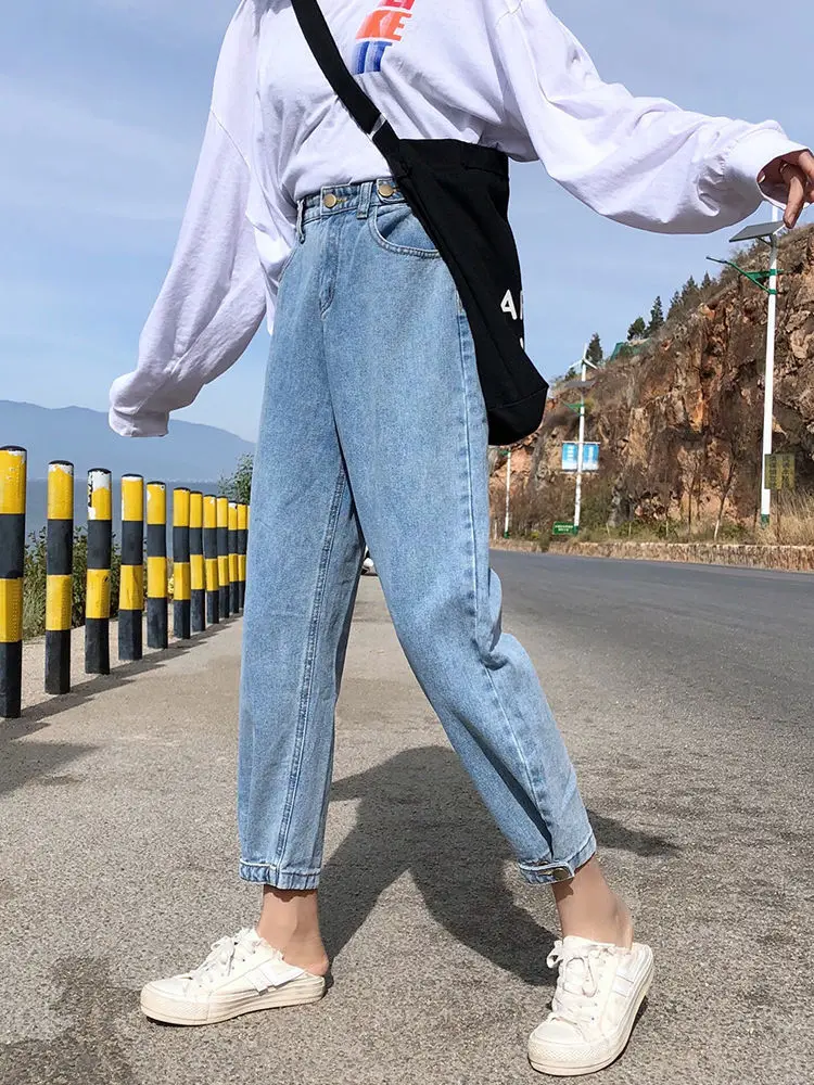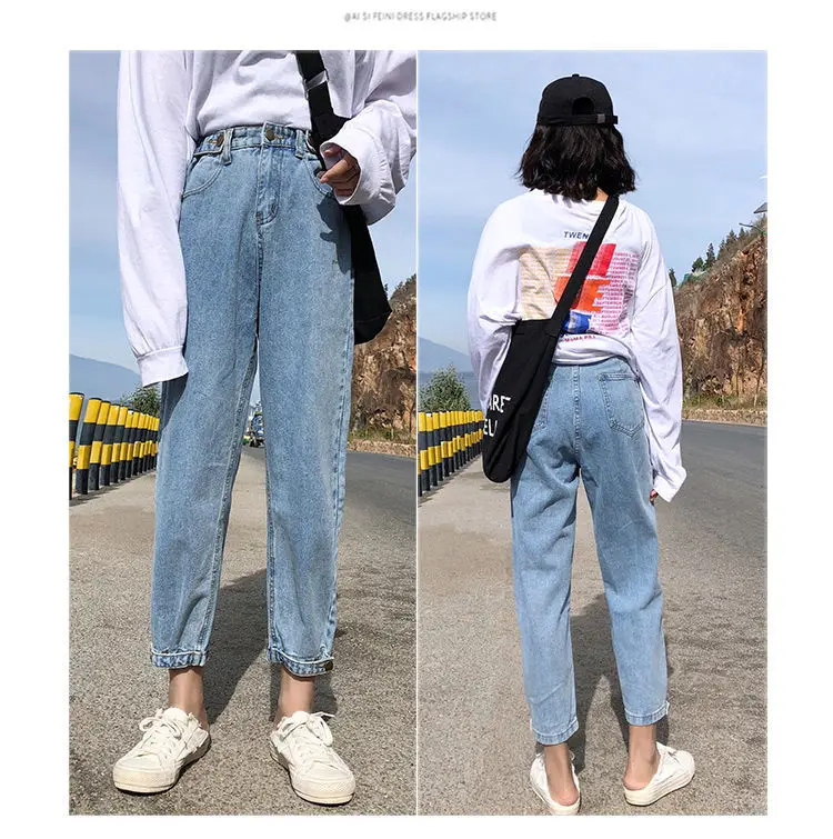 Джинсы женские эластичные в Корейском стиле Модные шикарные Универсальные женские уличные брюки Harajuku повседневные с высокой талией