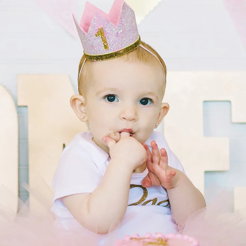 Милая шапочка с декором для дня рождения, повязка на голову с корон...