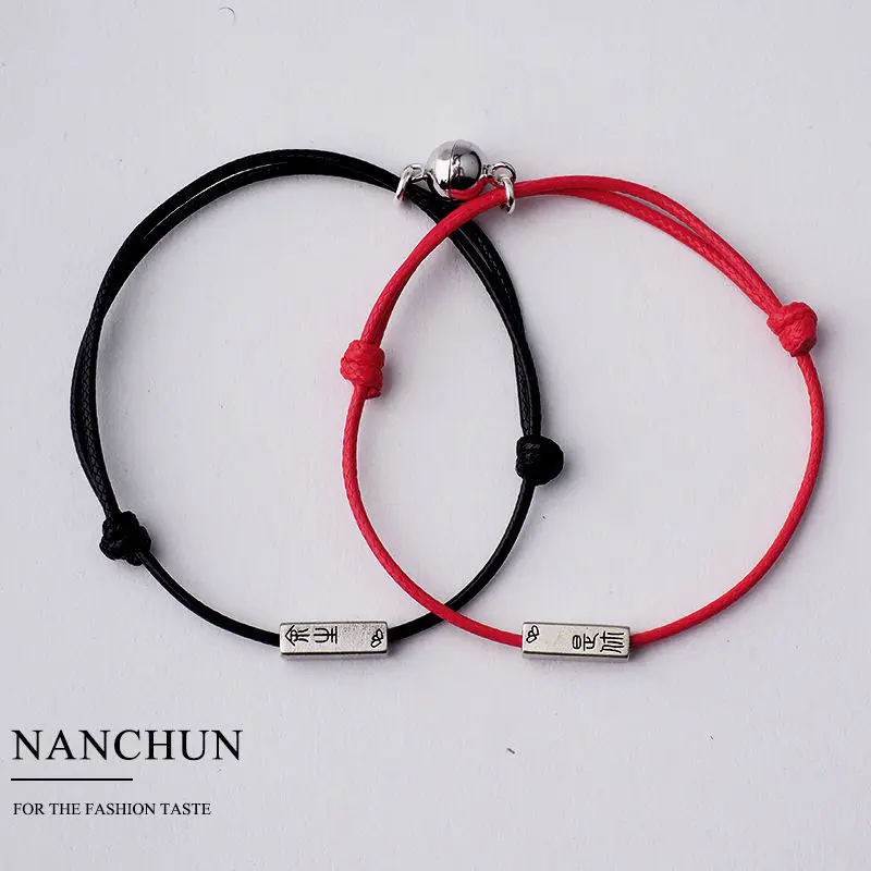 Парные магнитные браслеты, регулируемый плетеный браслет из резьбы, браслет с надписью Love Forever, Плетеный шнурок, подарок на день Святого Валентина, ювелирные изделия