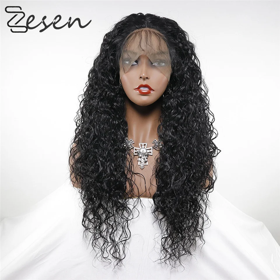 Черный свободный вьющийся синтетический кружевной передний парик Детские волосы влажные и волнистые вьющиеся термостойкие волосы T-образный парик повседневная одежда