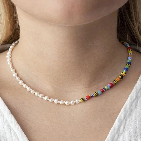 Чокер с радужными бусинами, ожерелье с подвеской из натурального пресноводного жемчуга в стиле барокко, женская бижутерия