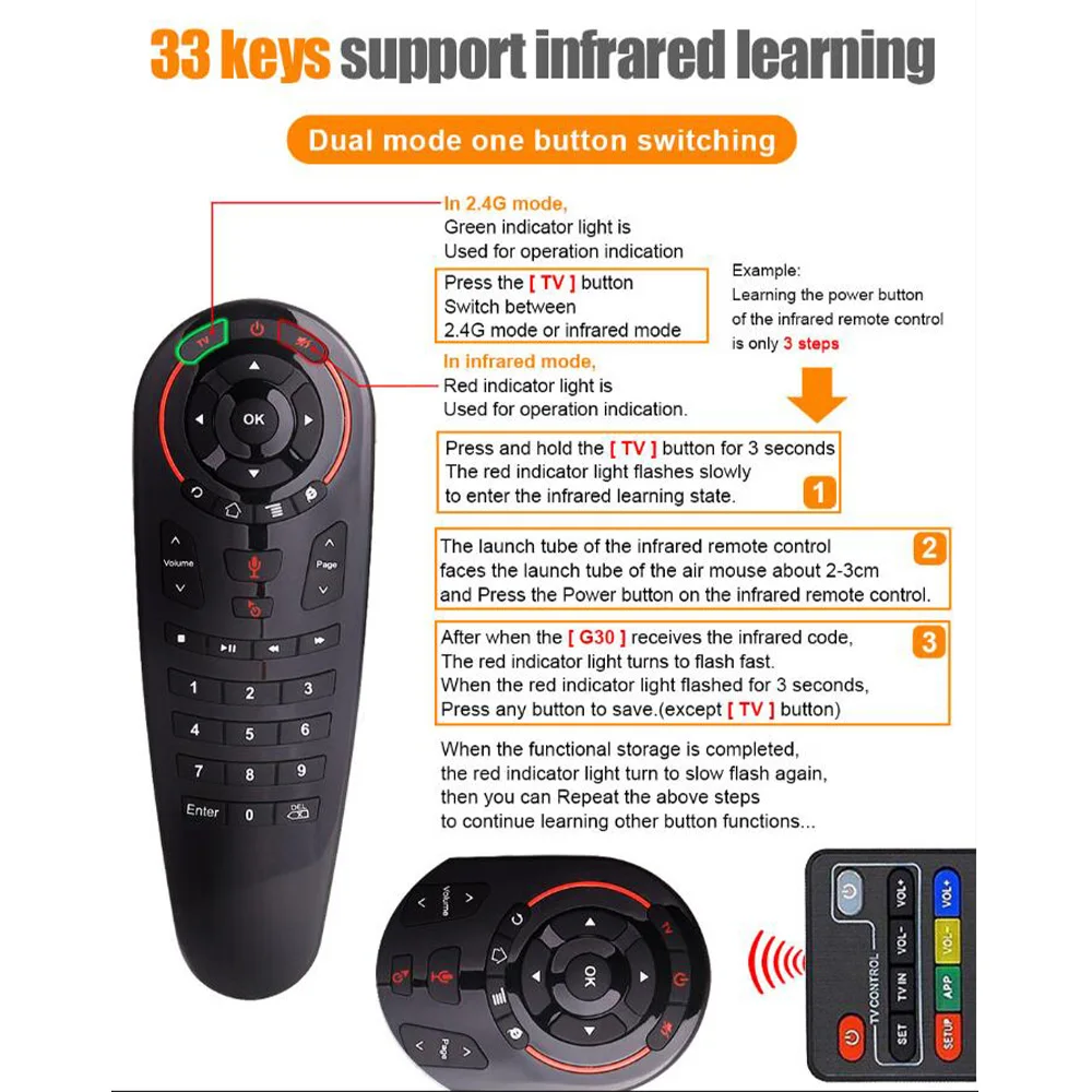 G30 G30S воздушная мышь Голосовая Летающая мышь USB2.4G Интеллектуальный голосовой пульт дистанционного управления гироскоп ИК обучение