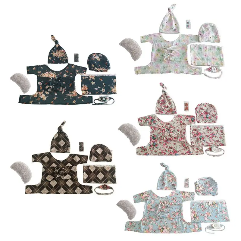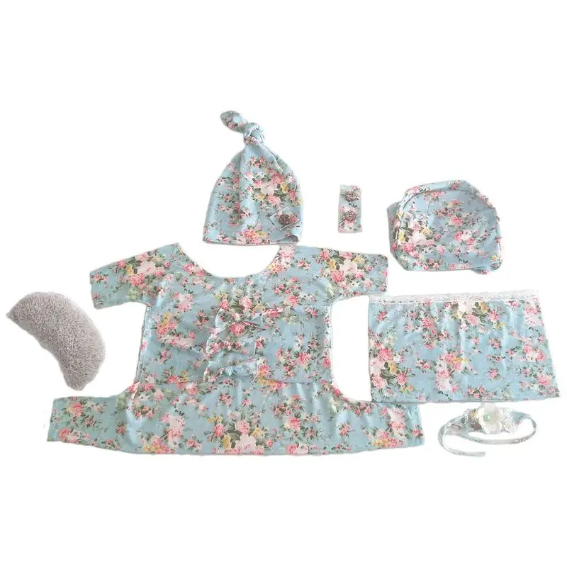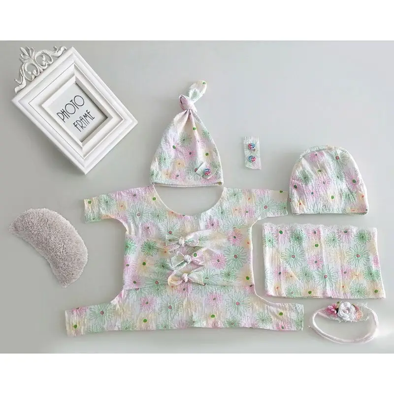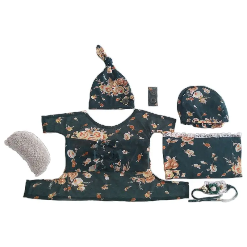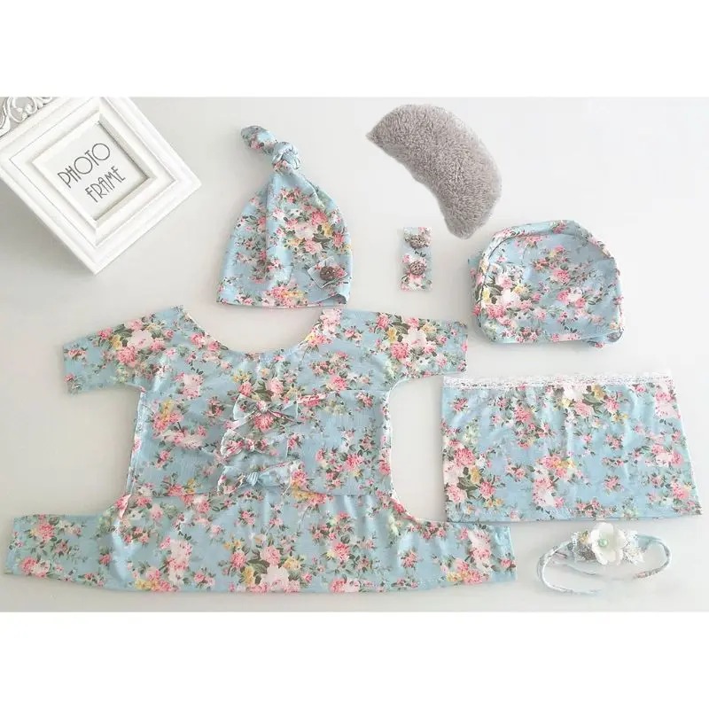 7Pcsset Newborn Photo Props Floral Bow Baby Photography Costume Kits Wraps Top Knot Hat Headband Posing Pillow