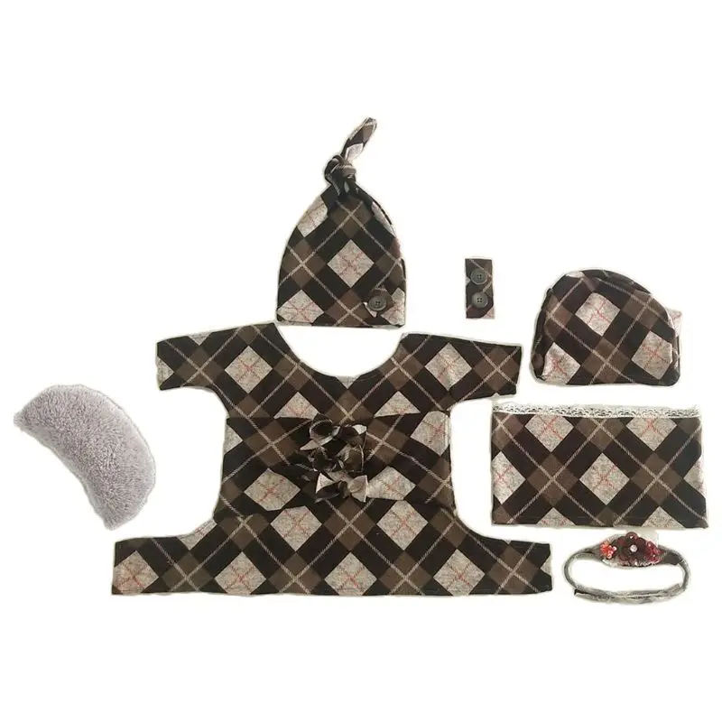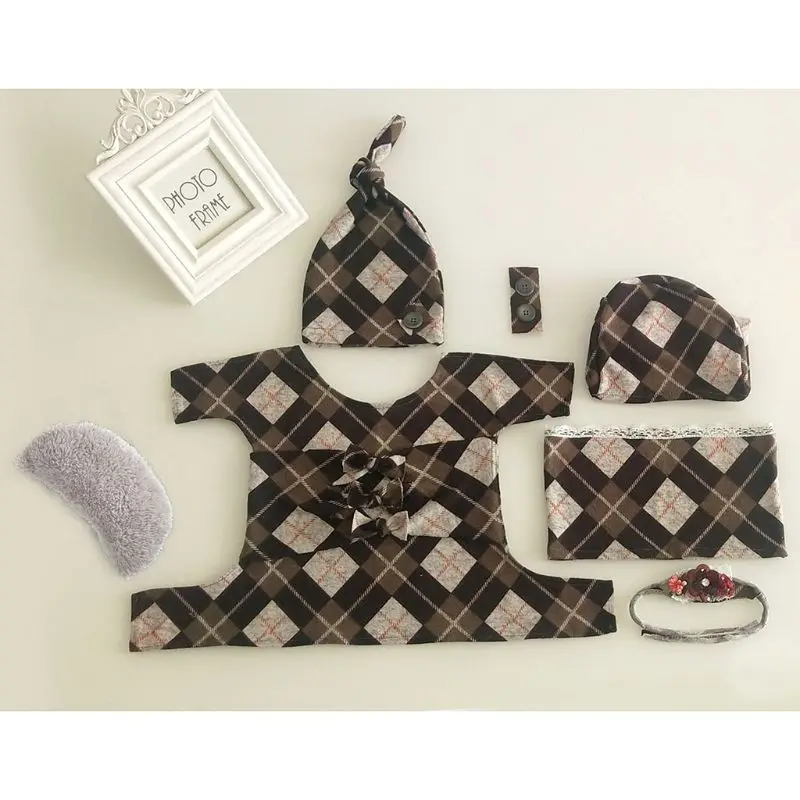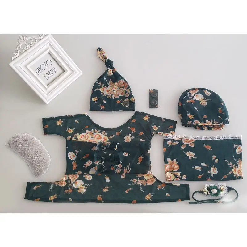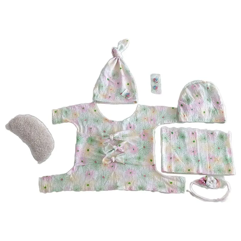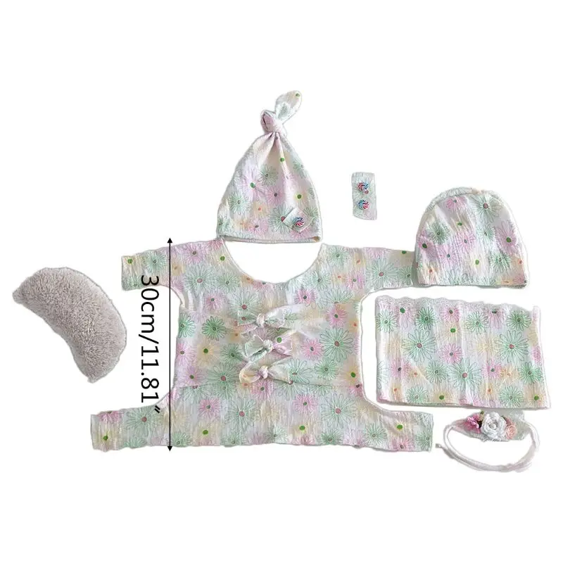 7Pcsset Newborn Photo Props Floral Bow Baby Photography Costume Kits Wraps Top Knot Hat Headband Posing Pillow