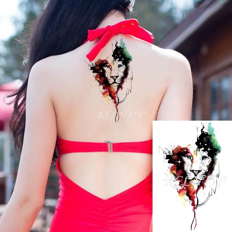 Водостойкая временная татуировка-наклейка с изображением Льва, большого животного, аквачернильный элемент, флэш-тату, для женщин и мужчин