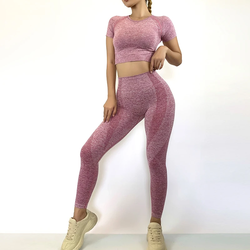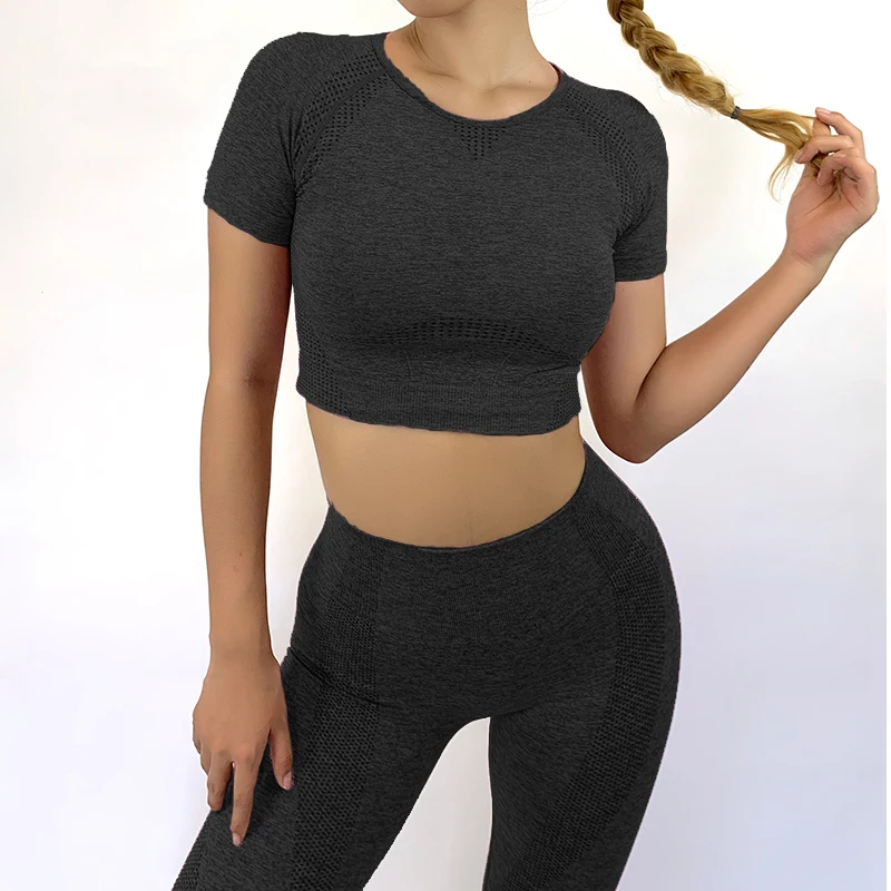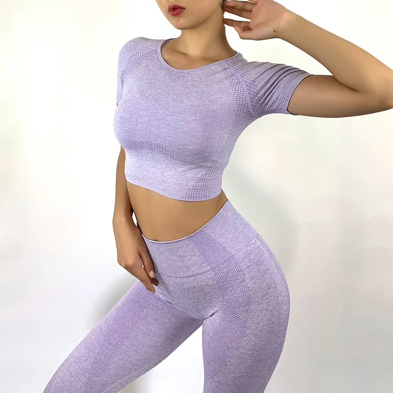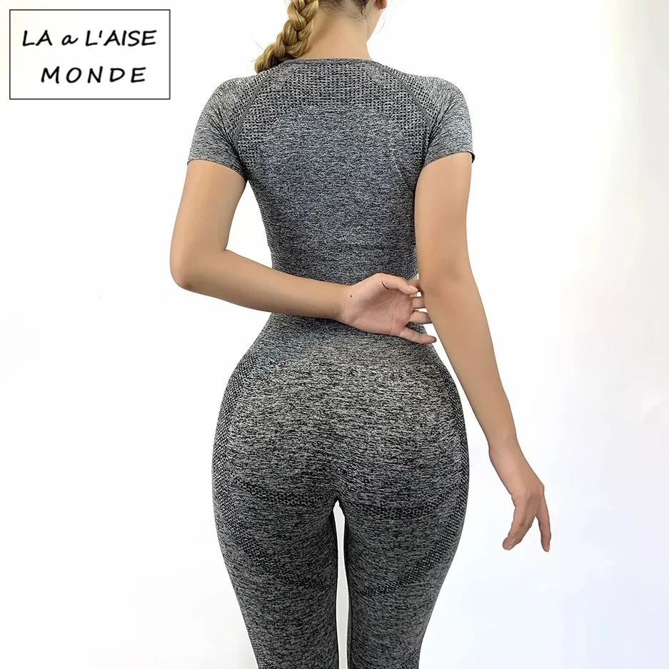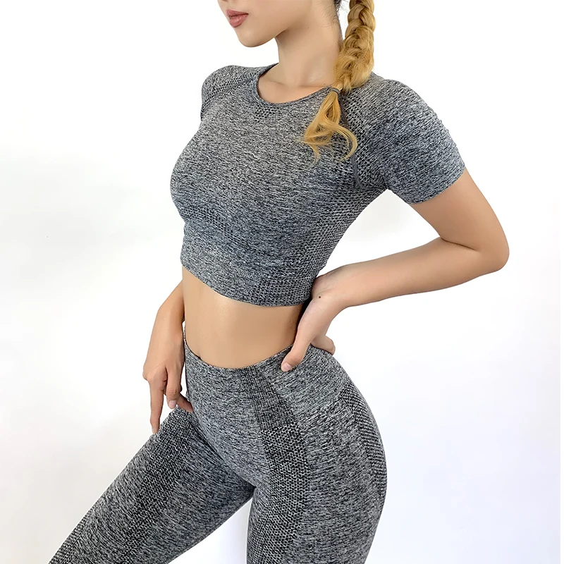 Женский новый комплект из 2 предметов, спортивный топ для йоги, футболка с коротким рукавом + штаны для йоги, облегающие сексуальные штаны с высокой талией, спортивная одежда для йоги