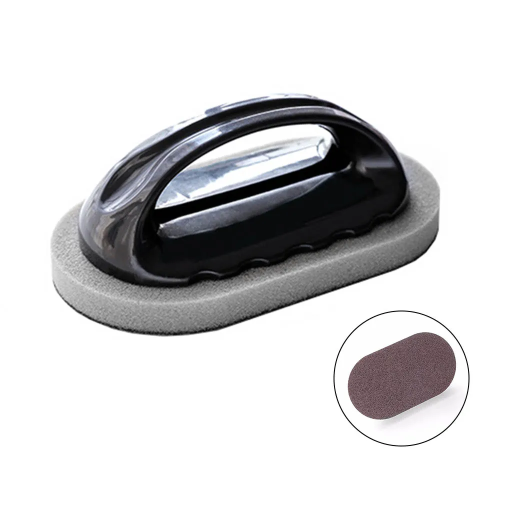 Представляет собой ручку-основание к которой приклейте твёрдый поролон. К поролона приклейте шлифовальная бумага. Попробовала почистить дно у сковороды - эффект есть, но не сказала бы, что супер. Кухонный гаджет на каждый день. Застарелый нагар не уберёт.