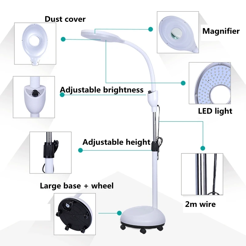Профессиональный красивый светильник для татуировок, 8X лупа, бестеневая Напольная Лампа, регулируемая светодиодсветодиодный вышивка, рабочий светильник, бесплатная доставка