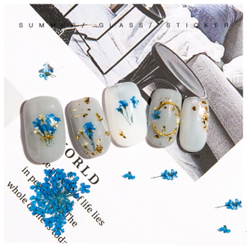 Декоративные 3D наклейки для ногтей, 1 коробка, высушенный цветок для ногтей натуральные Цветочные Переводные картинки для ногтевого дизайна, украшения для УФ-гель-лака, маникюра