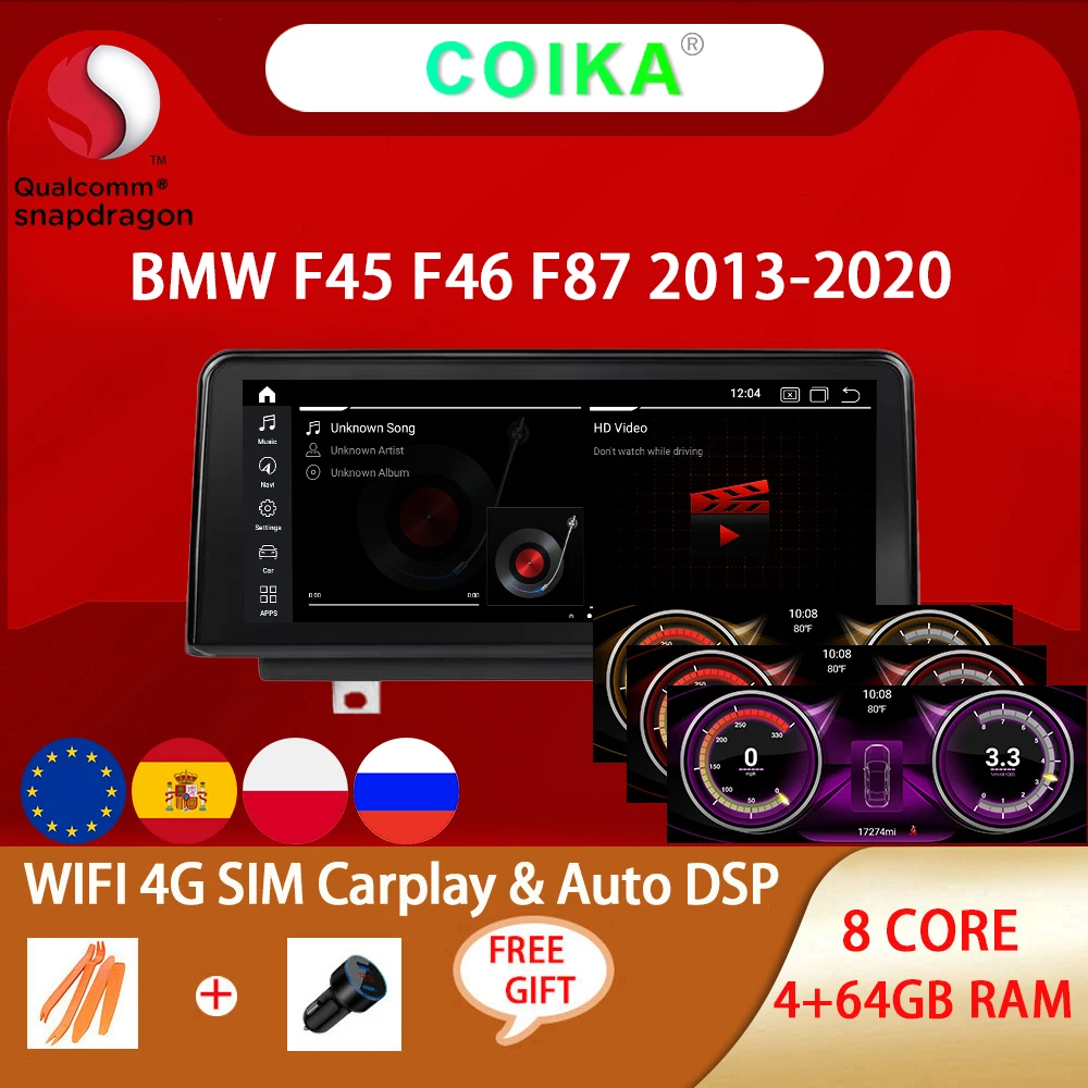 Автомобильный мультимедийный плеер Snapdragon 8 Core DSP 4 + 64 ГБ для BMW F45 F46 F87 2012-2020 GPS Navi Radio WIFI 4G LTE Carplay Android 10,0