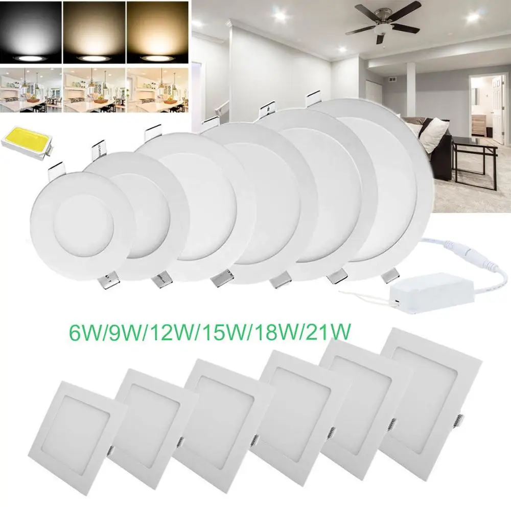 Ультра тонкий затемнения светодиодный встраиваемый потолочный светильник Панель осветительный прожектор, светодиодный прожектор для дома белый светодиодный светильник, 6 Вт, 9 Вт, 12 Вт, 15 Вт, 15 Вт 21 110V 220V