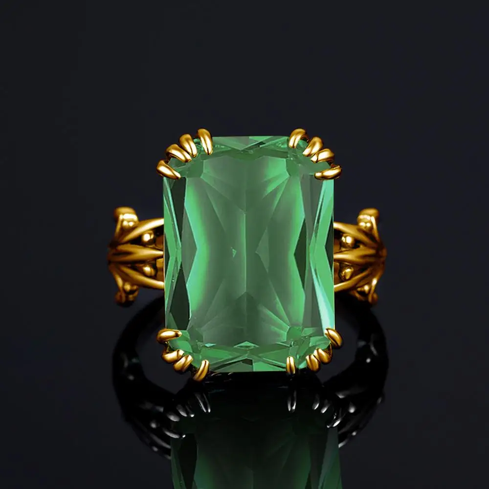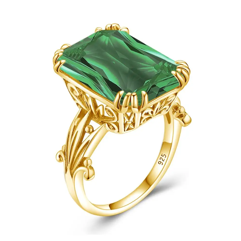 Бренд: Rosewood StoryТип камня: Синтетический изумрудРазмер основного камня: 13*18 ммФорма камня: прямоугольникТип металла: твердое 925 пробы серебро 14K позолоченноеТовар Вес: 5,5 г