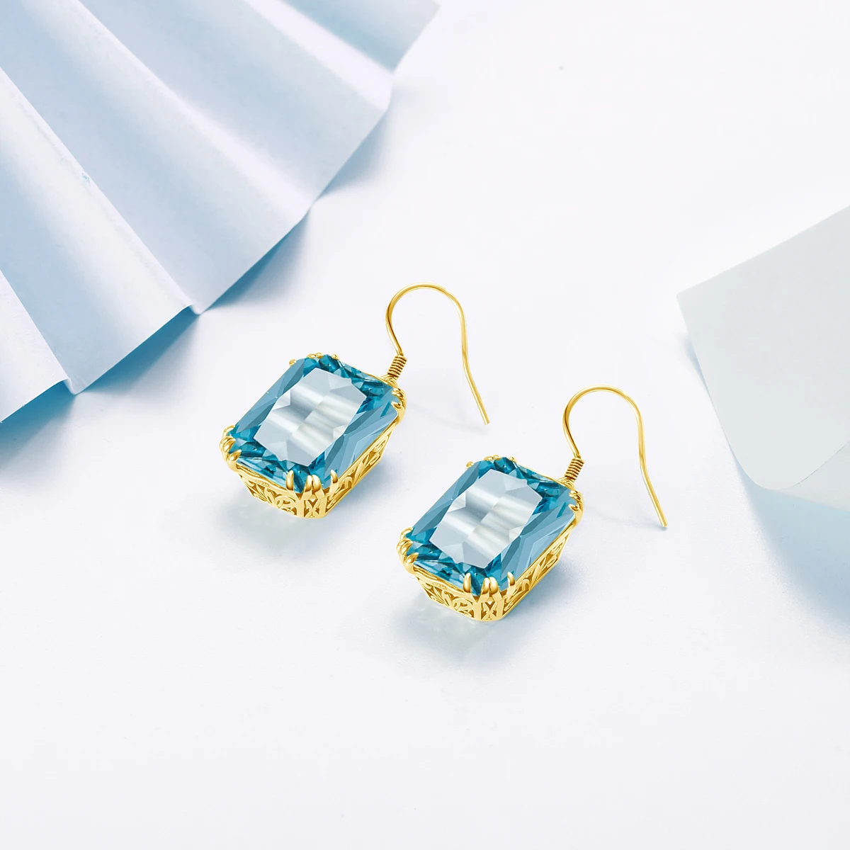 Aquamarine Earrings Silver 925Blue Topaz Drop Earrings