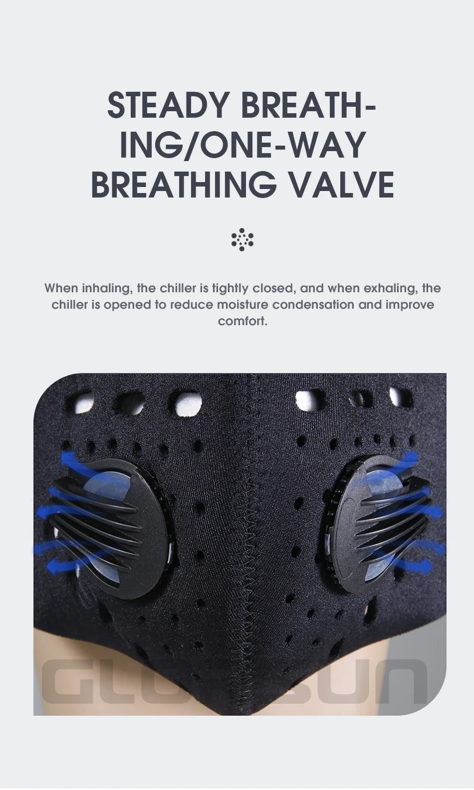 Маска GLORSUN для рта с фильтром от загрязнения, для спортивных тренировок, тренировок, pm2.5, оптовая продажа, моющаяся маска с запахом, смогом, пылью
