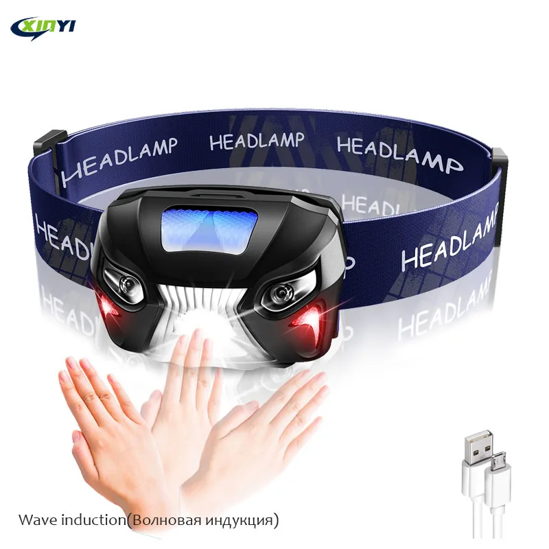 Налобный фонарь светодиодный, фонарь для кемпинга лм, с зарядкой по USB, с датчиком движения