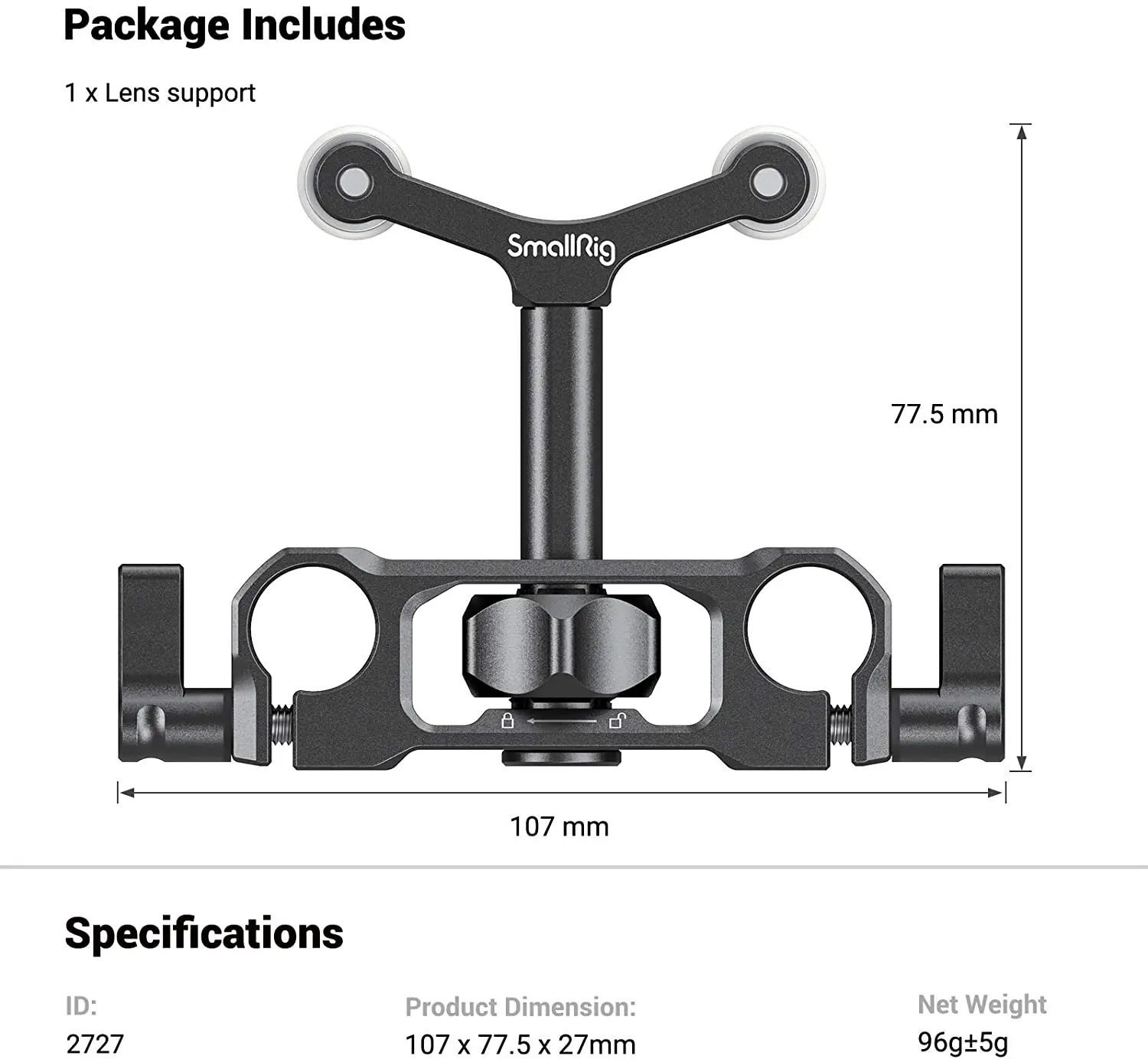 Универсальное крепление для объектива SmallRig 15 мм LWS, Поддержка DSLR-камеры, регулируемая для 15 мм рельсовой системы поддержки 2727