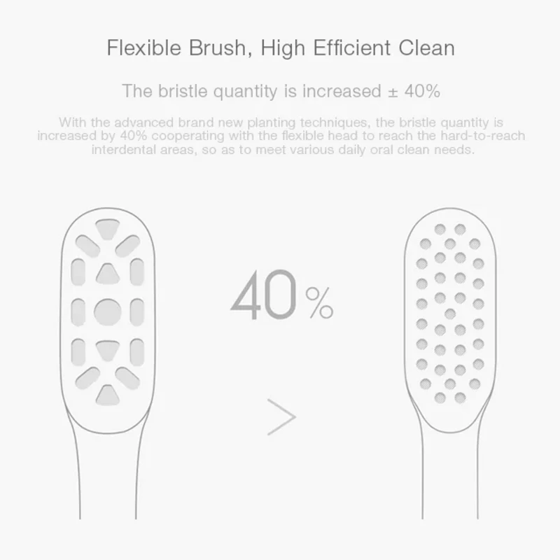 ● Количество щетины увеличено в 40 раз, и каждая щетина округляется, чтобы избежать царапин поверхности зубов и повреждения десен