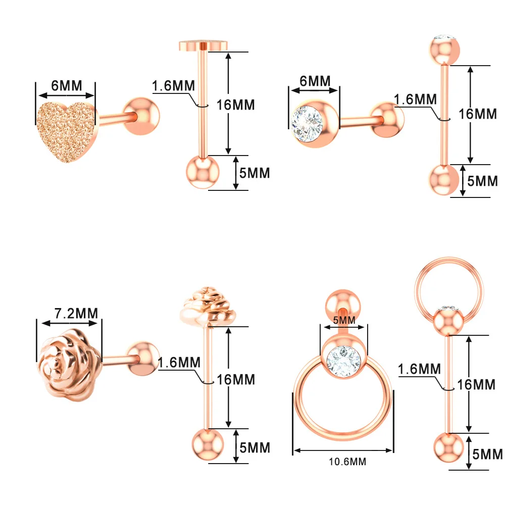 Кольца для пирсинга сосков, с кристаллами, 14 г