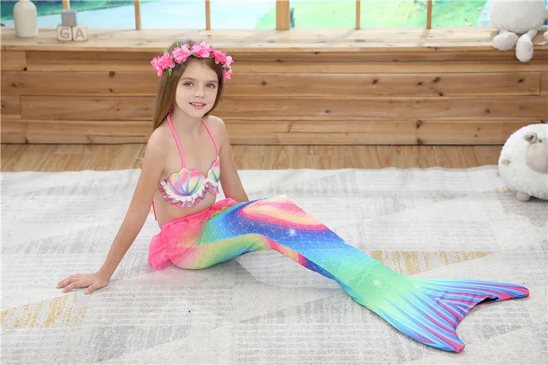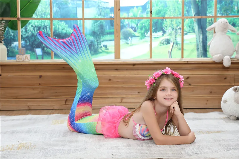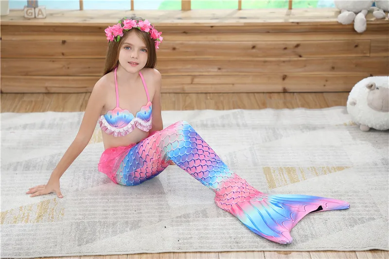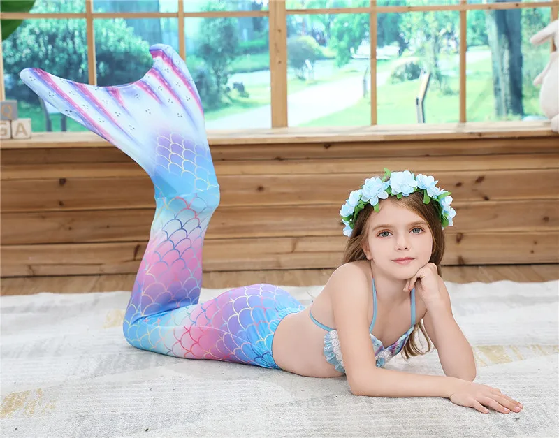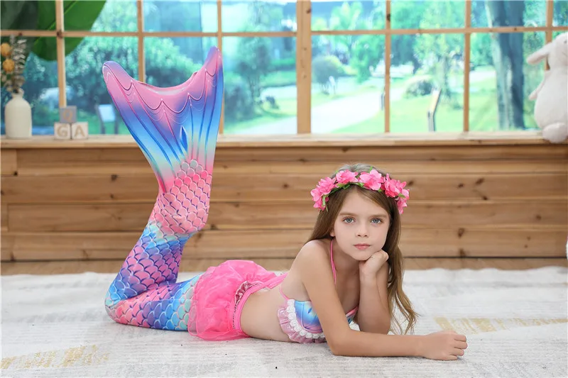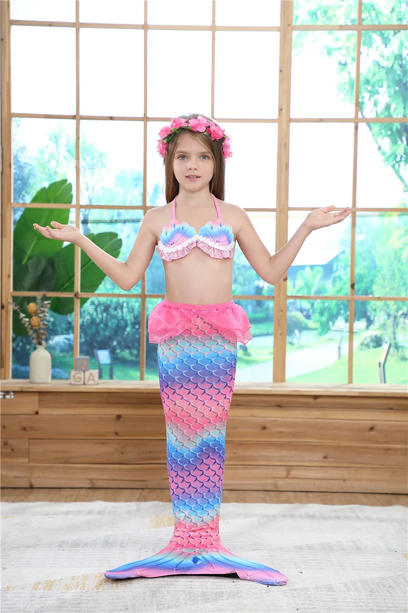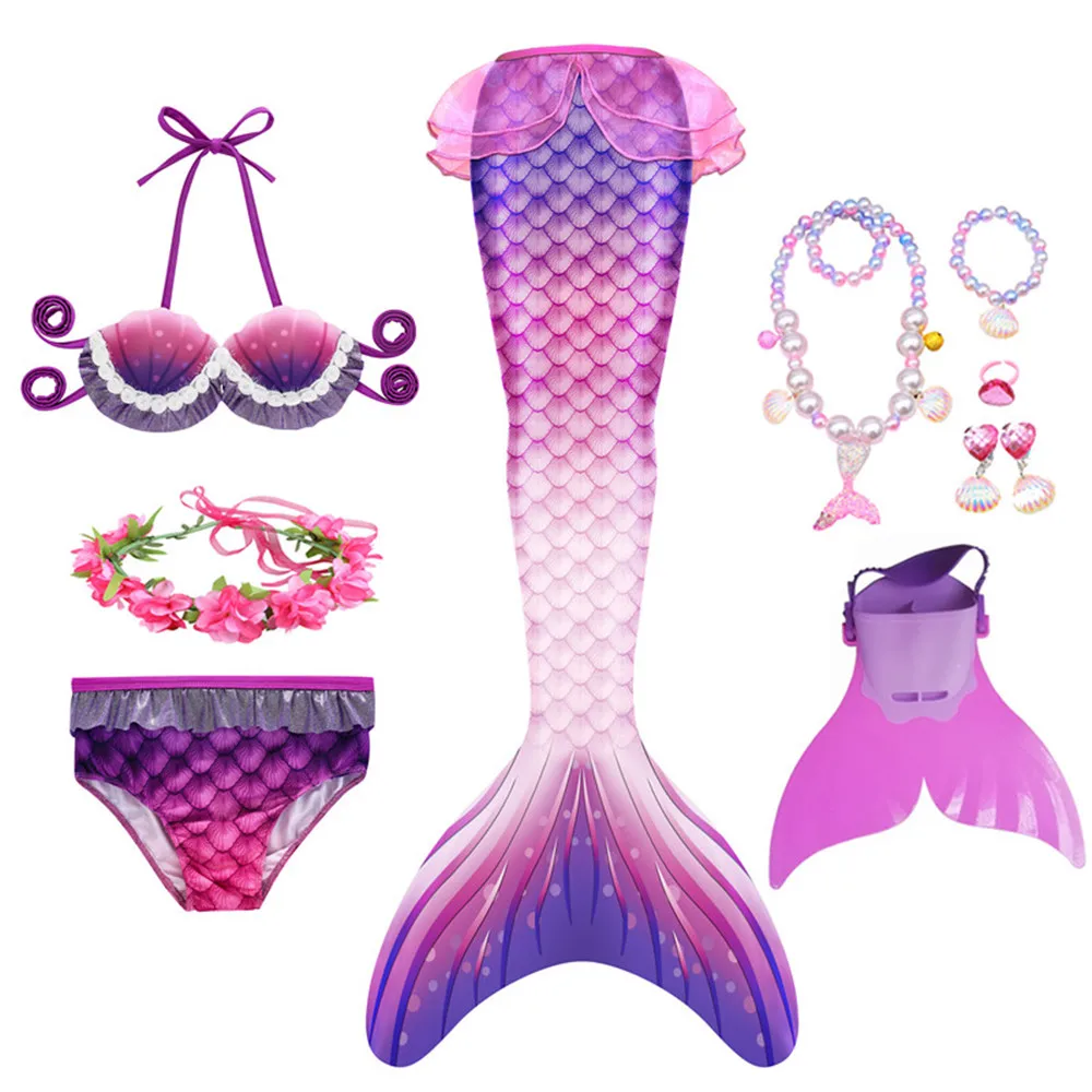 Костюмы Русалочки с хвостами для девочек, Моноласты, Флиппер, Русалочка, плавательные хвосты для детей, детская летняя пляжная одежда, купальники