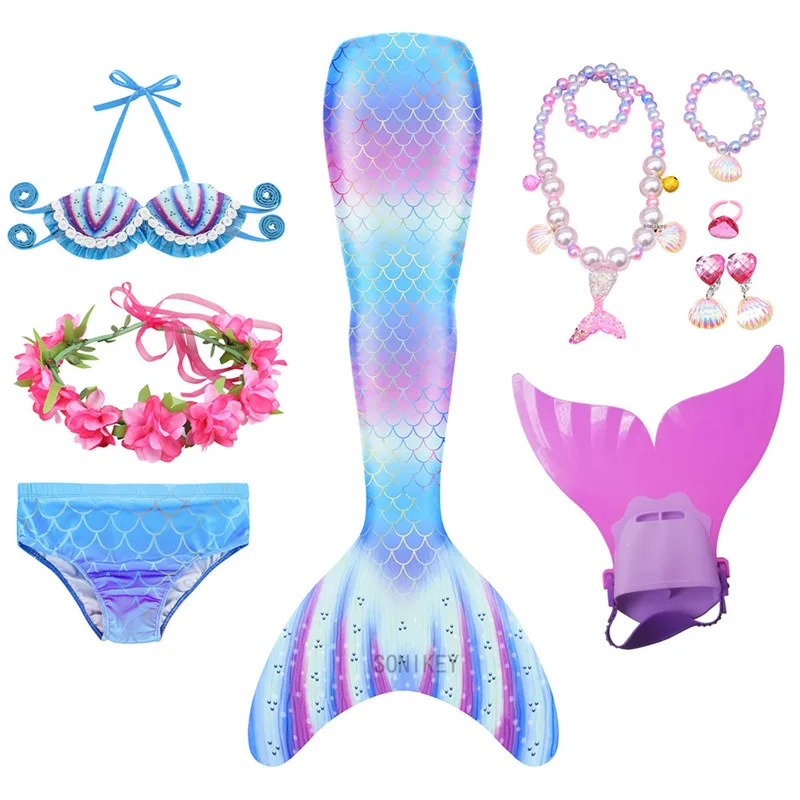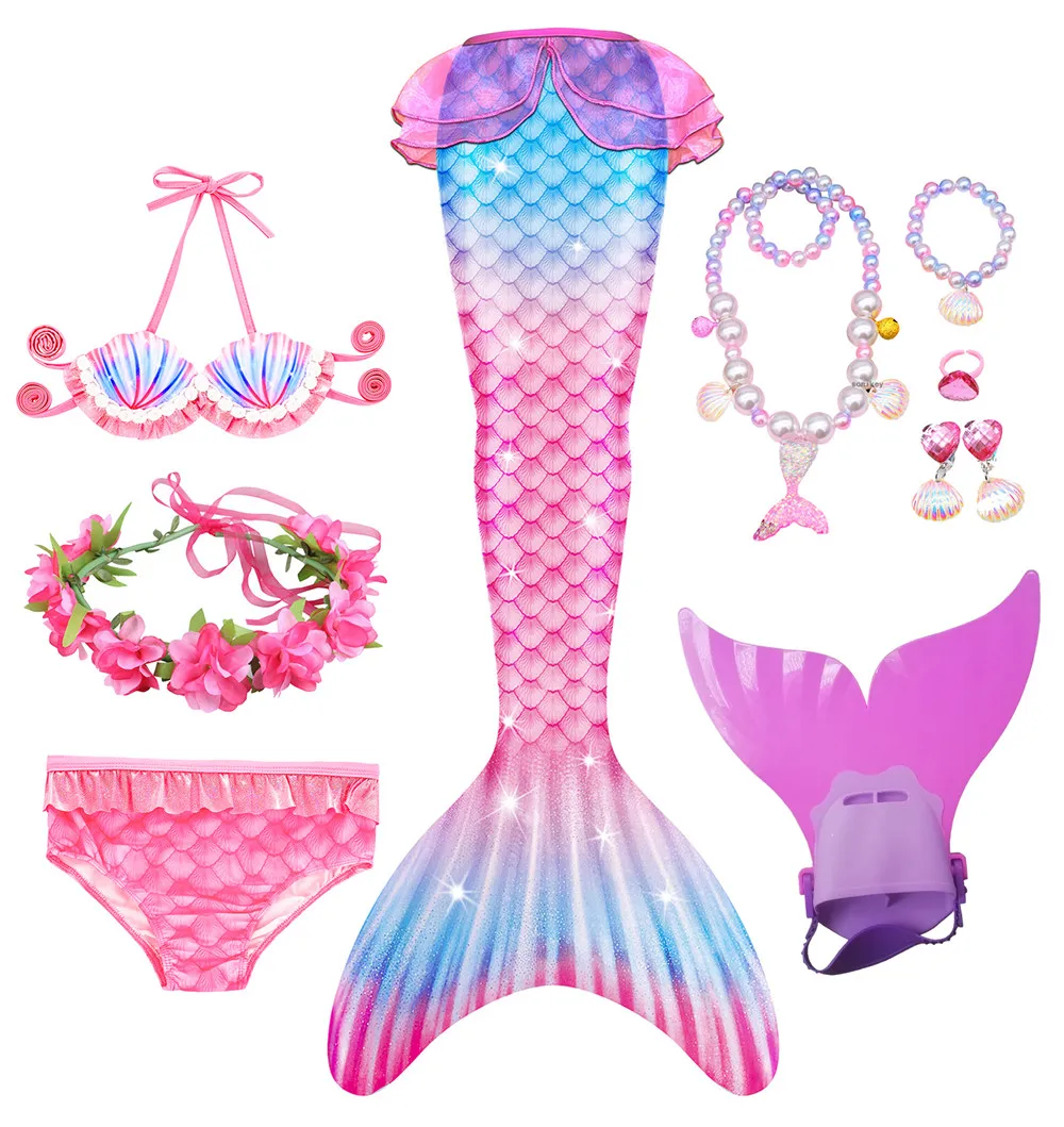 Посылка Русалочки-5: (1 * бюстгальтер + 1 * шорты + 1 * платье с хвостом русалки + 1 * гирлянда + 1 * монофин)