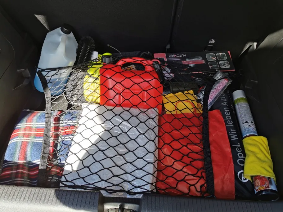 Сеть безопасности для багажника. В моем случае это для Opel Astra K Sport Tourer 2017. Багажник этого транспортного средства очень широкий, поэтому сеть остается в центре (поддерживает больший размер сети). Он обеспечивает безопасность объектов и пакетов во время путешествия. Настоятельно рекомендуется