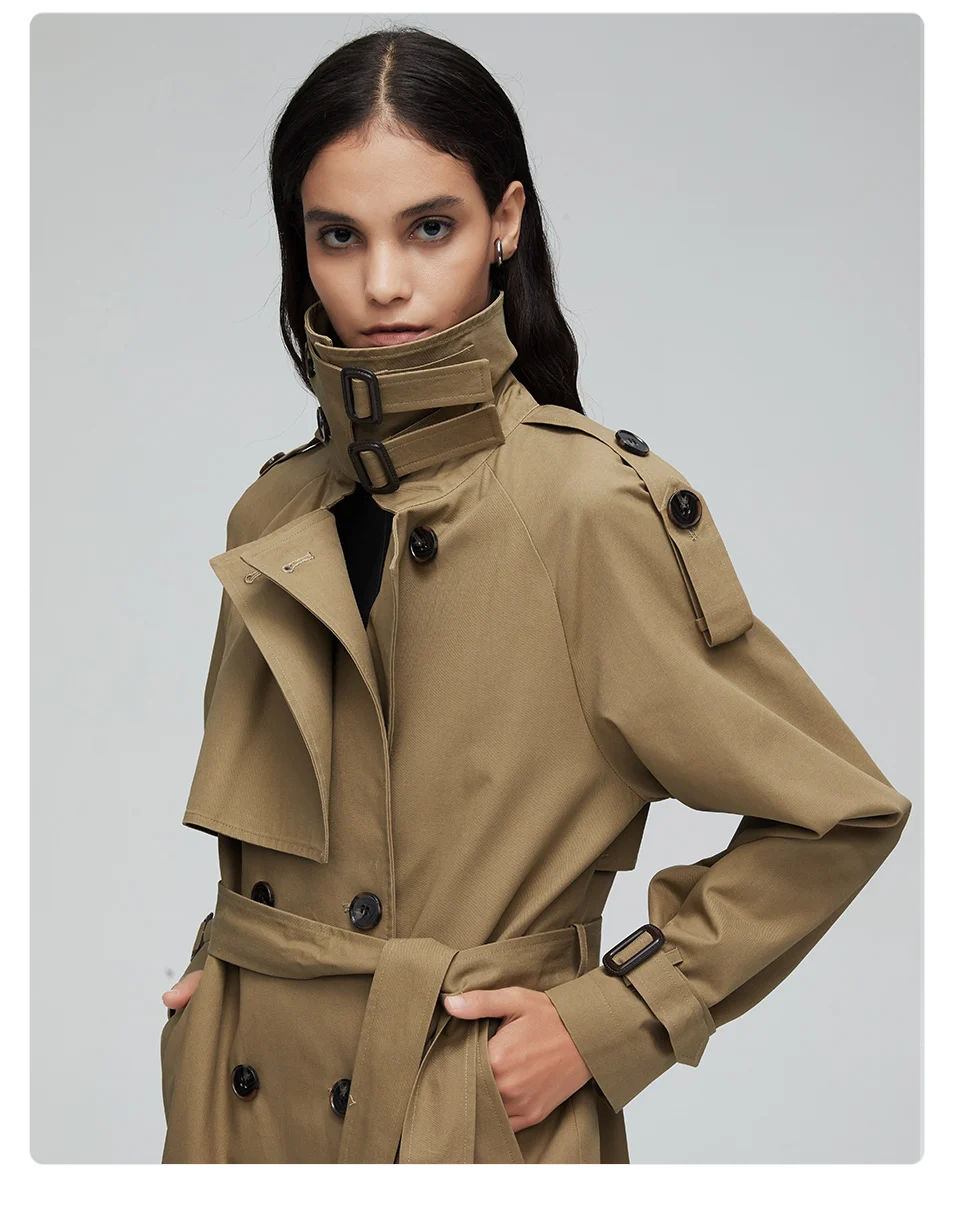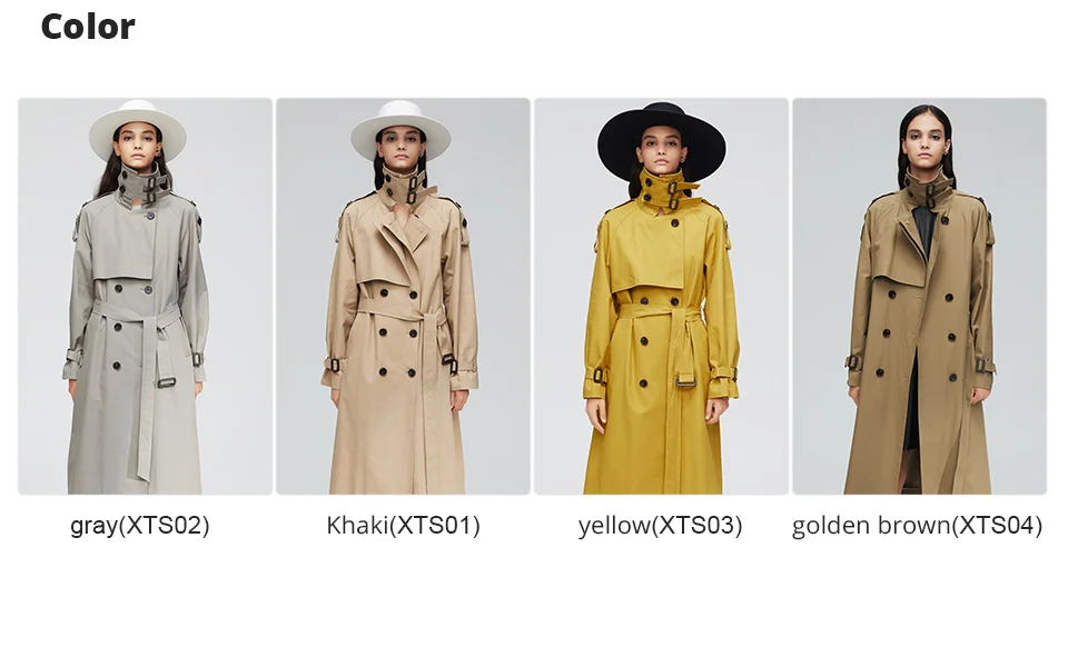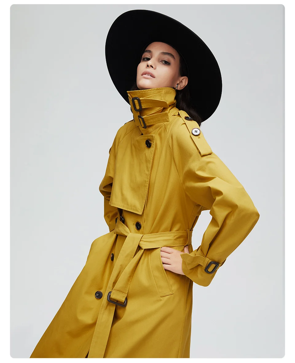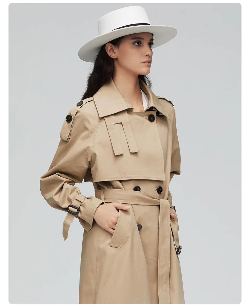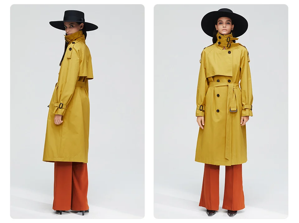 Пальто-Тренч женское, Осеннее, двубортное, длинное, 2020