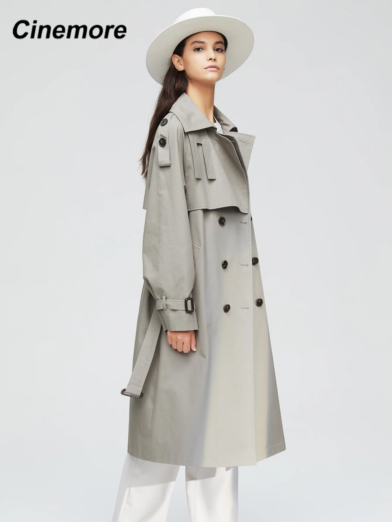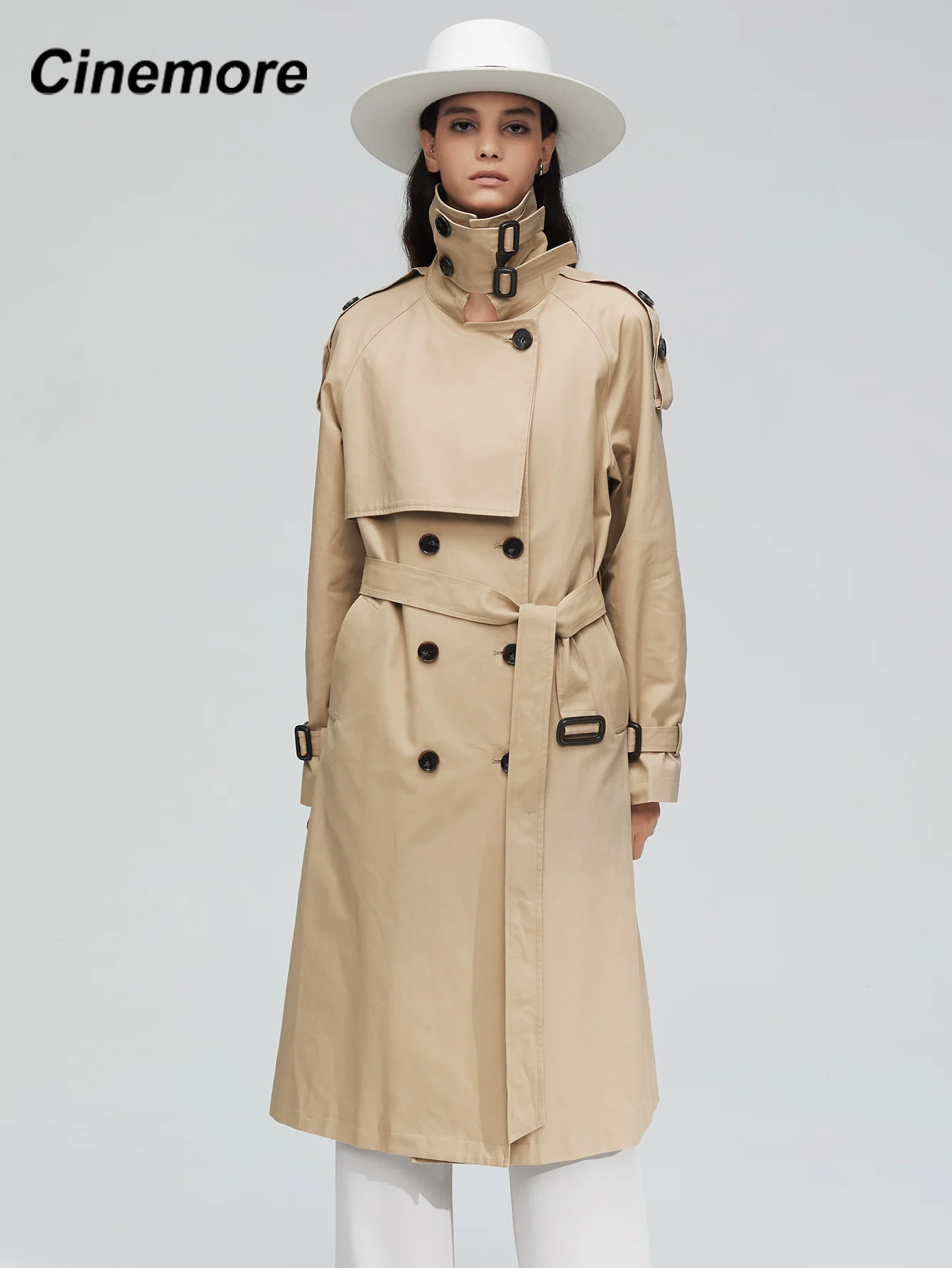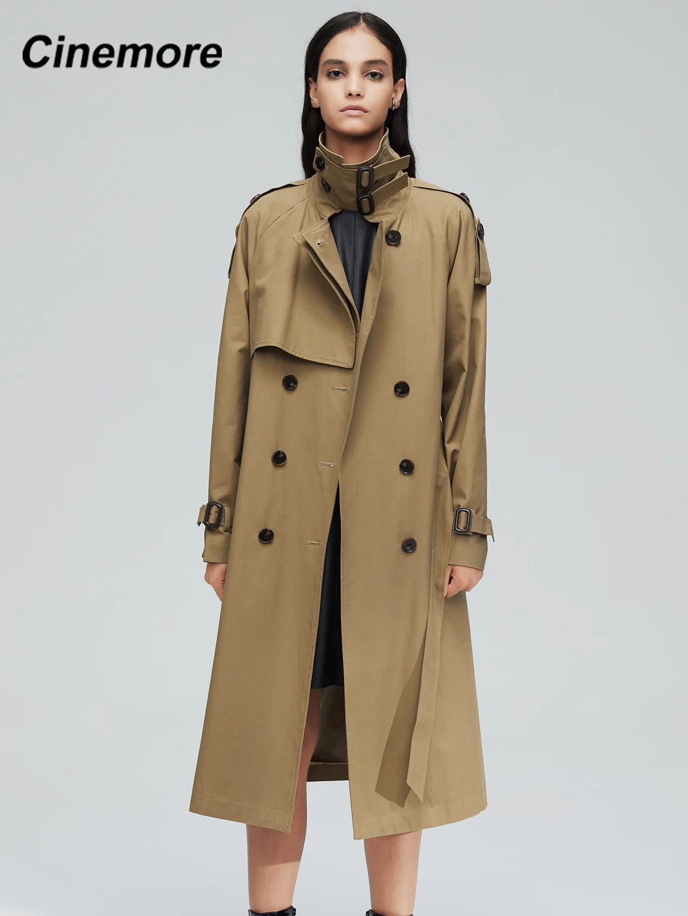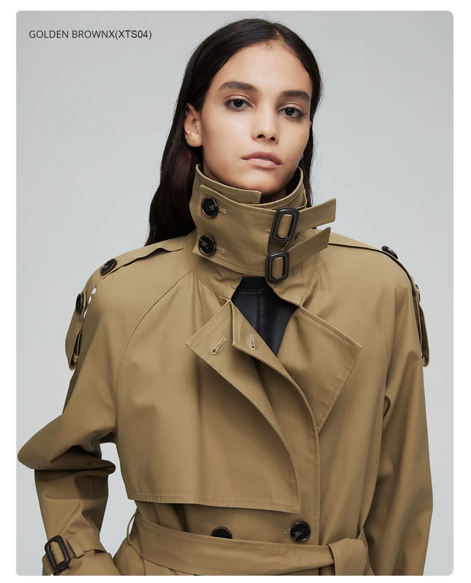 Пальто-Тренч женское, Осеннее, двубортное, длинное, 2020