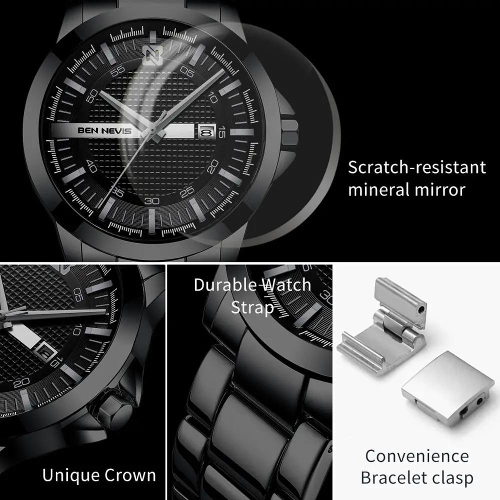 Описание: -100% новый с биркой и высокого качества; -Высококачественный циферблат топового бренда класса люкс, функция отображения даты; -Отображение даты и часов -Ремешок из нержавеющей стали высокого качества -Водонепроницаемость 3ATM / 30M Характеристики: -Диаметр корпуса: 44,5 мм -Толщина корпуса: 10 мм -Длина ремешка: 238 мм -Ширина ремешка: 23 мм -Материал корпуса: нержавеющая сталь -Материал ремешка: нержавеющая сталь Посылка -1 часы Ben Nevis -1 коробка Ben Nevis