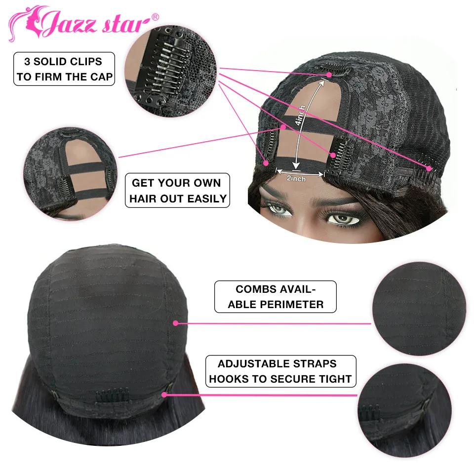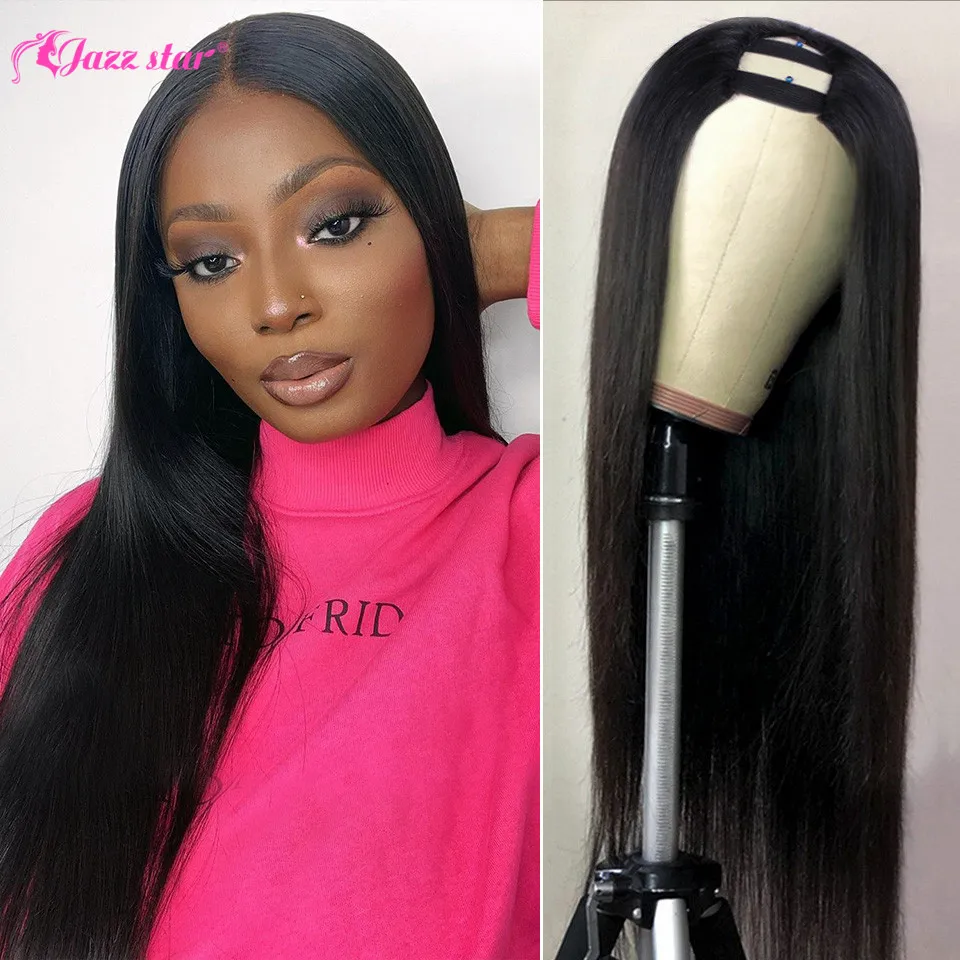Бразильский парик, прямые u-образные парики, человеческие волосы, парики для женщин, не Реми, волосы 150% плотности, полный конец, Jazz Star, волосы средней части