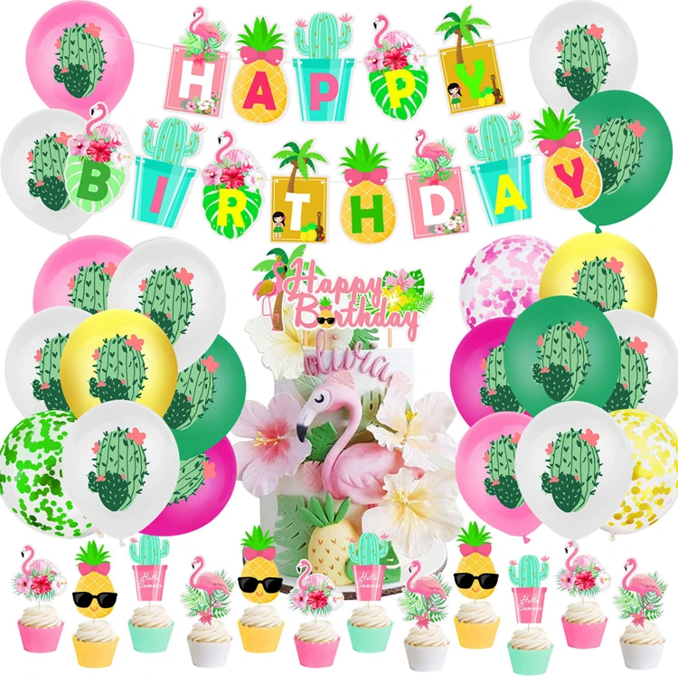 Гавайи вечерние баннер кактус воздушные шары в гавайском стиле Вече...
