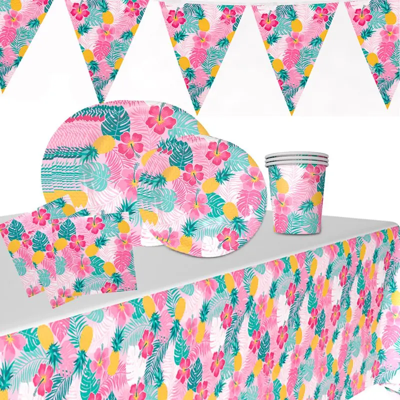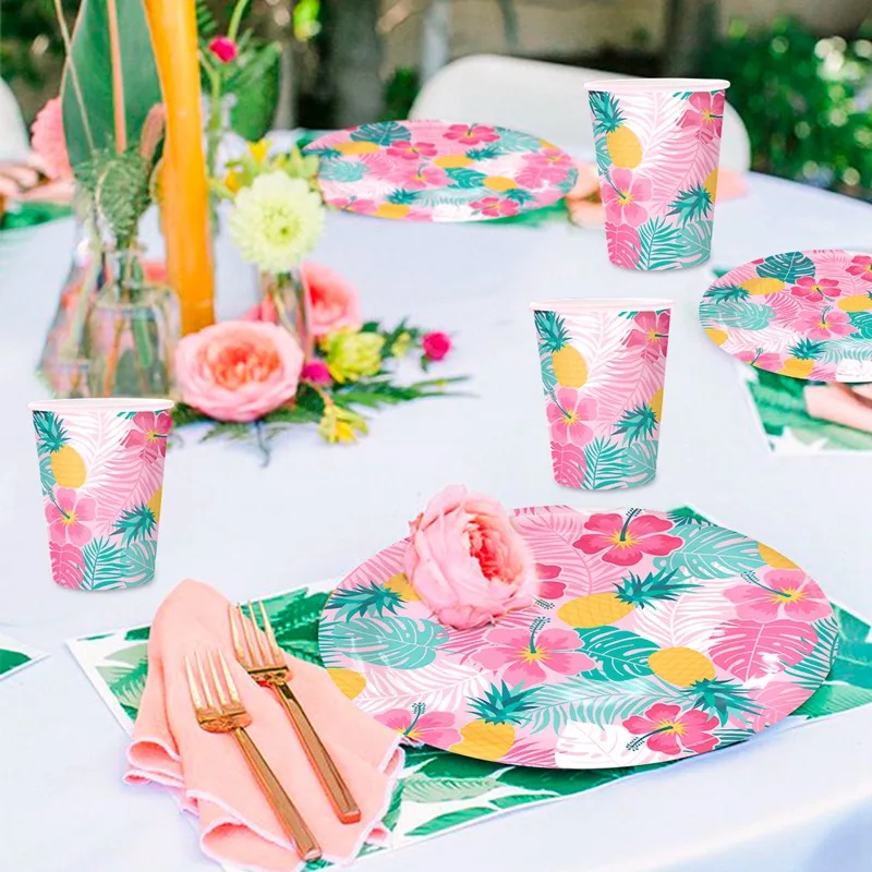 QIFU розовая одноразовая посуда, гавайский Декор вечерние, гавайска...