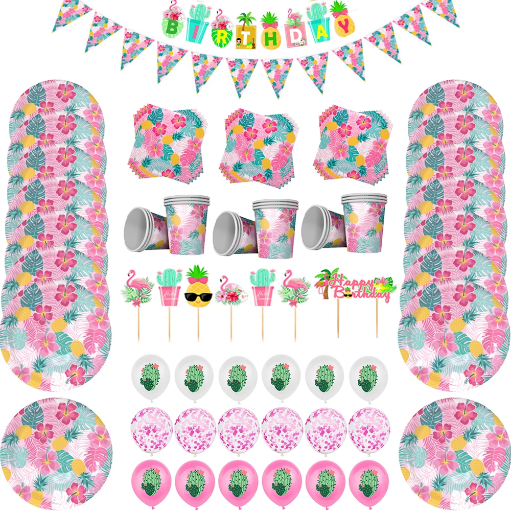 Розовая одноразовая посуда, набор украшения для вечеринки в гавайском стиле, тропический летний декор для вечеринки, дня рождения, детский надпись "Алоха Гавайи"