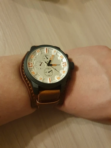 Muito bom. pesado e bonito. se você é muito magro, não recomendo pois o relógio é médio para grande.