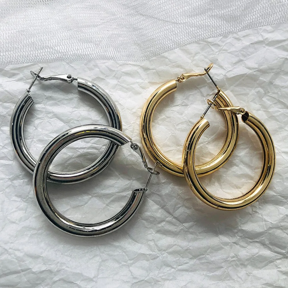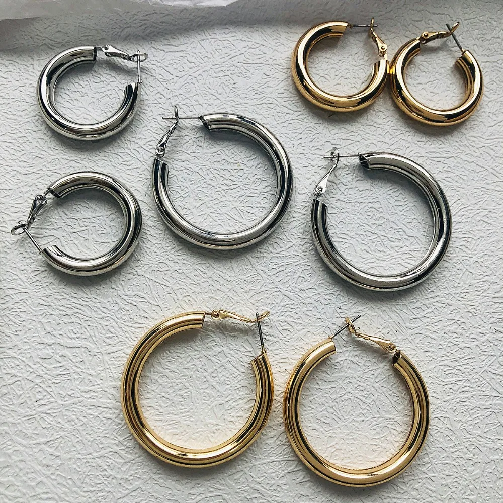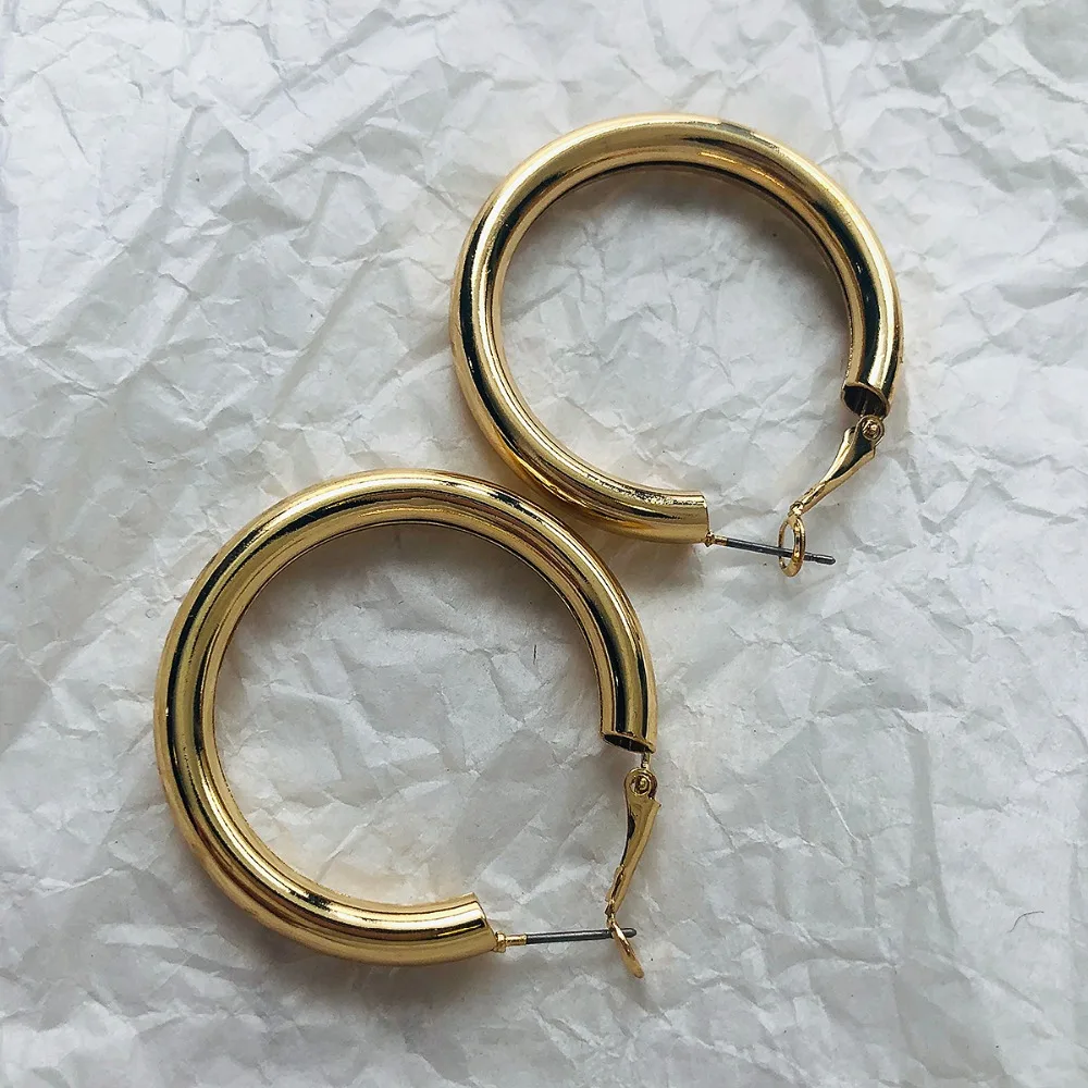 Женские крупные серьги-кольца AENSOA, золотистые крупные металлические серьги круглой формы, Винтажные Ювелирные украшения для подарка