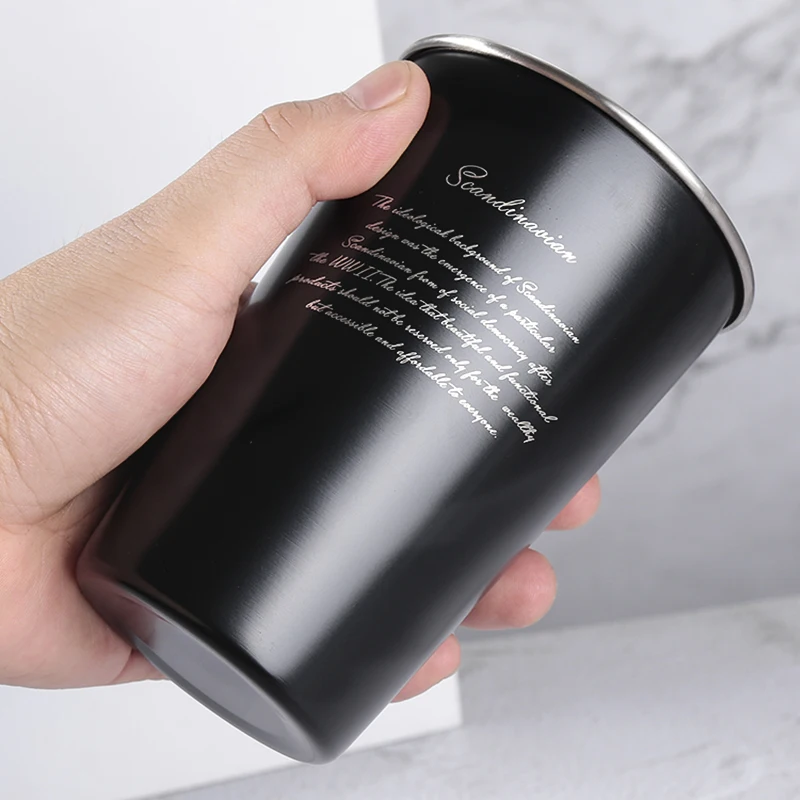Стаканчики из нержавеющей стали, 16 унций, небьющиеся, металлические стаканчики для пикника, кружки для пива, холодных напитков, кофе, сока, черные