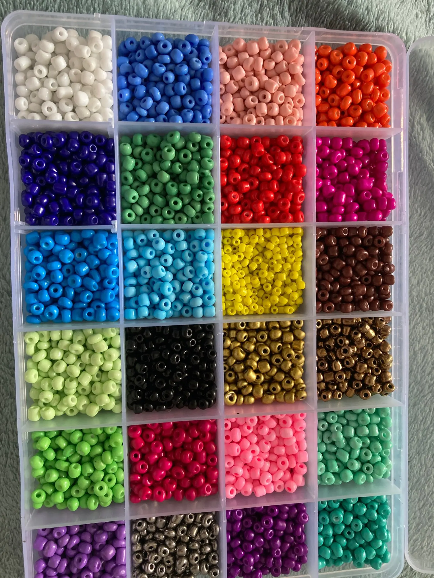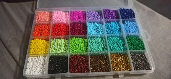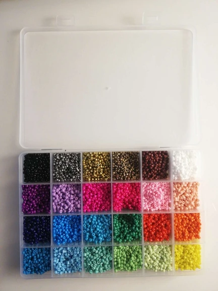 Красивые бусы упакованы в удобную коробку для хранения! Однако я ожидал, что на каждый цвет будут даны тысячи бусин в коробке, 24,000 бусин и 24 цвета, к сожалению, это не так.