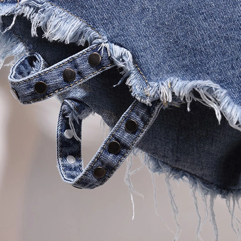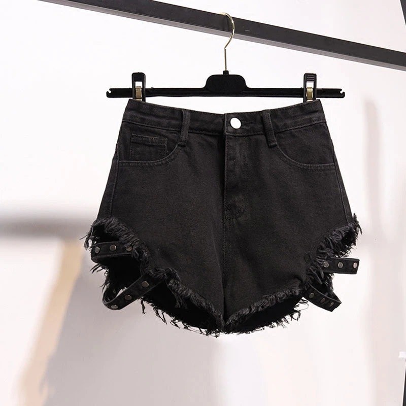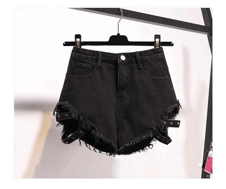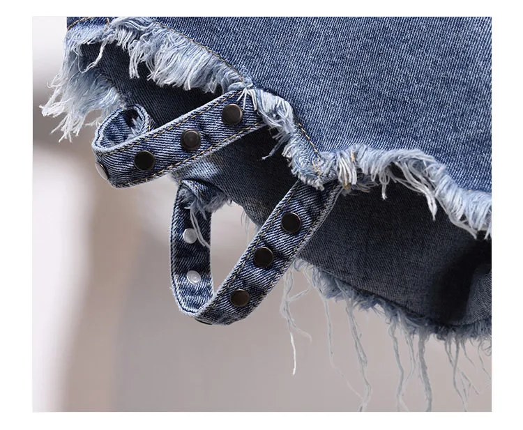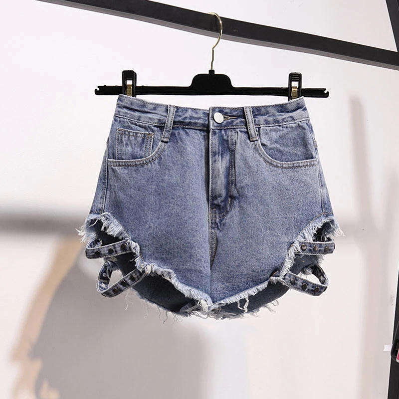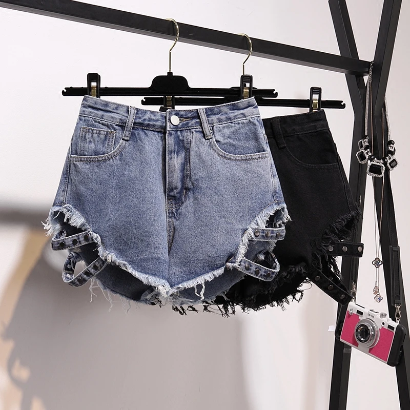 Женские рваные джинсовые шорты, летние пикантные шорты с высокой талией, бахромой, KZ248, 2021, 5XL