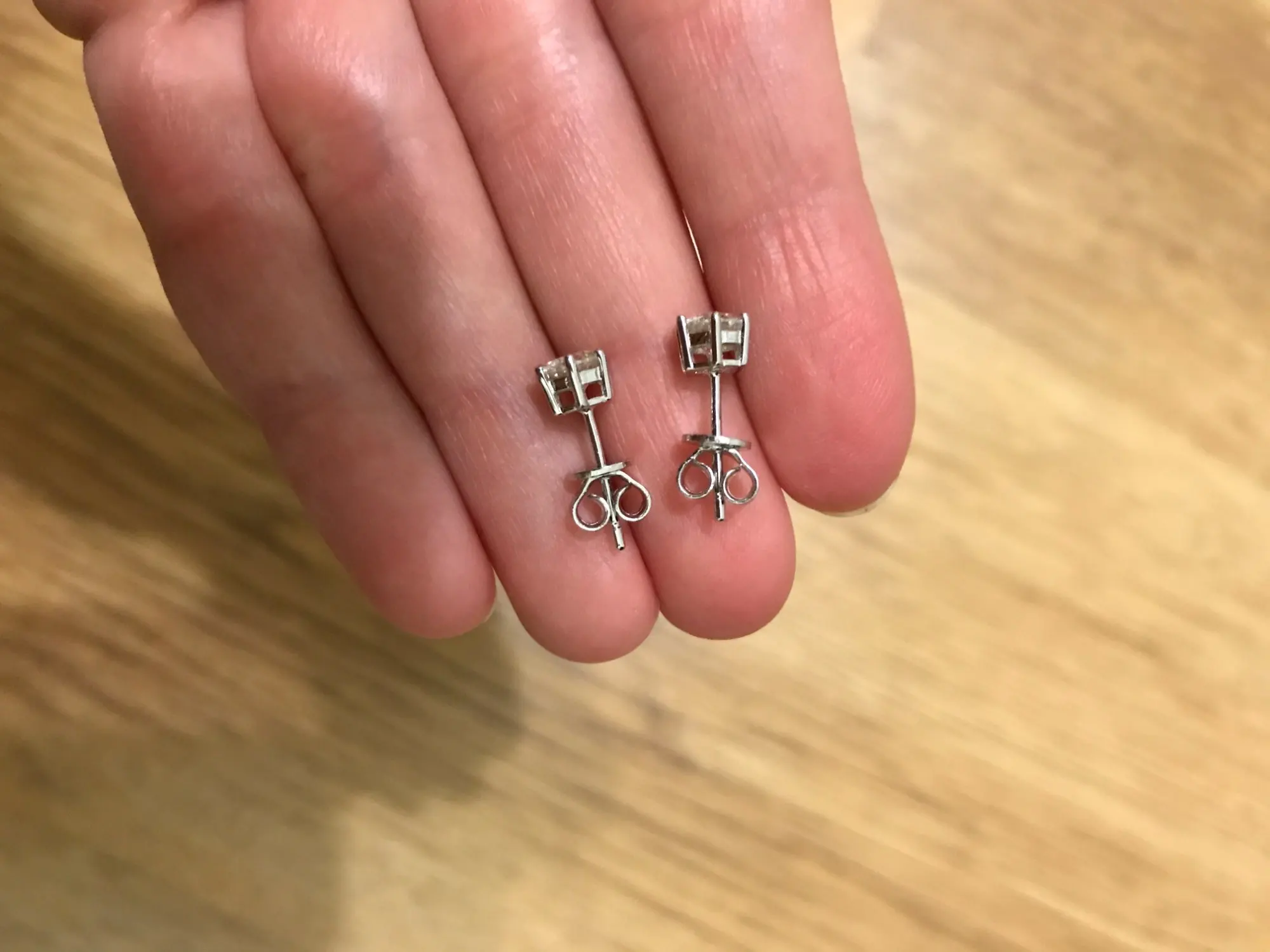 Отличные пусеты, сделаны безупречно, застежки очень хорошие. На фото вместе с золотым кольцом с реальным бриллиантом. Нет конечно бриллиантами они не стали, но смотрятся в ушах супер))) супер быстрая доставка в Москву 10 дней.