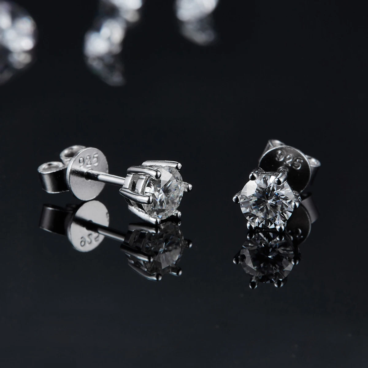 GEM'S балет 6 зубцов круглый гвоздик ухо кольцо Мода 925 серебро ювелирные изделия 5 мм серьга с муассанитом для женщин