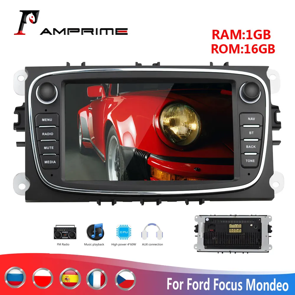 Автомобильный мультимедийный плеер AMPrime, проигрыватель на Android, с 7 "экраном, GPS, Wi-Fi, Mirrorlink, FM, USB, для Ford FocusC-MaxMondeoGalaxy