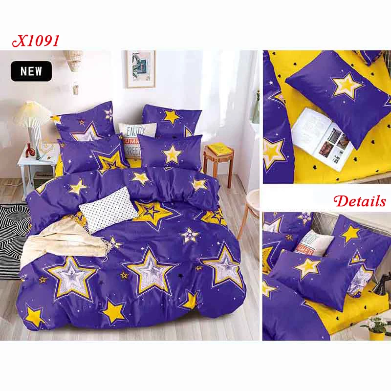 Комплект постельное бельё Alanna X-1008, комплект из 4-7 предметов, с принтом в виде звезд, дерева, цветов постельного белья