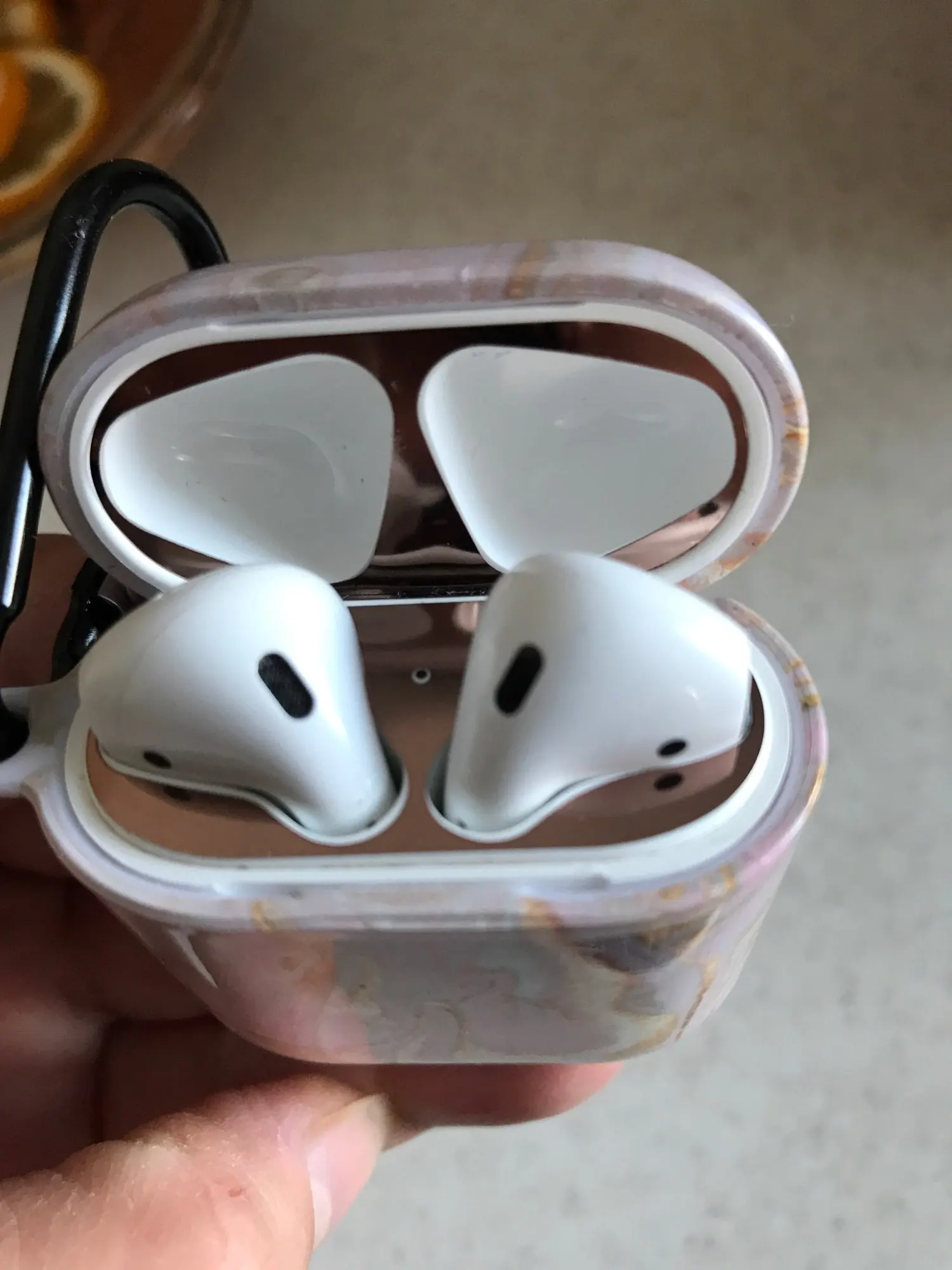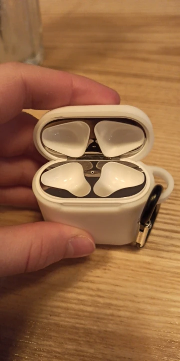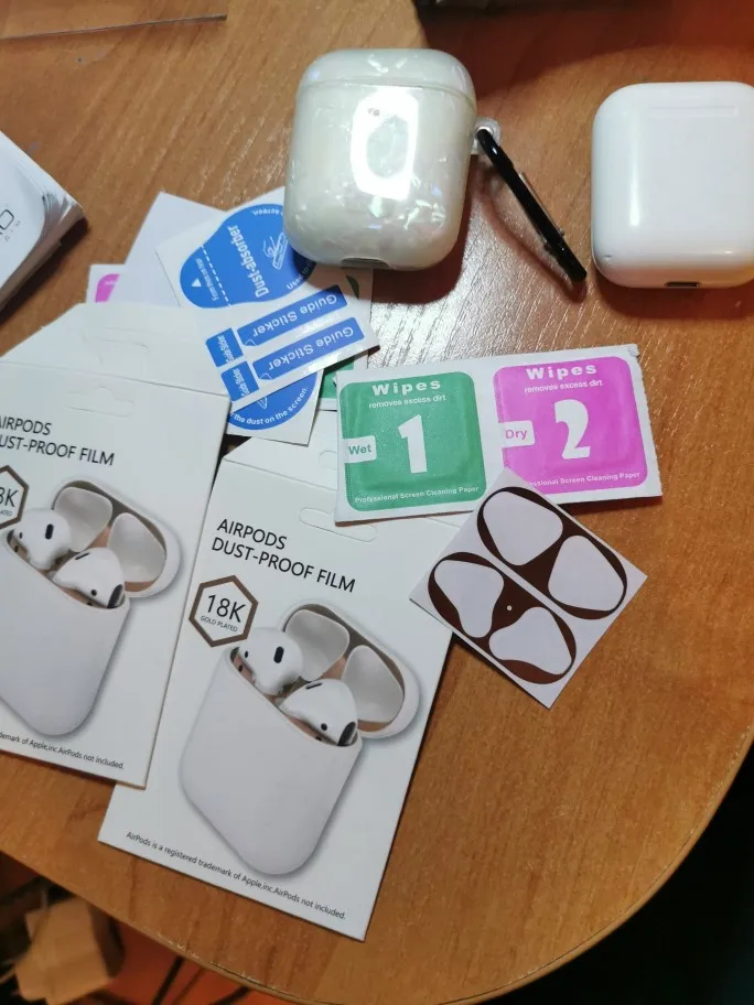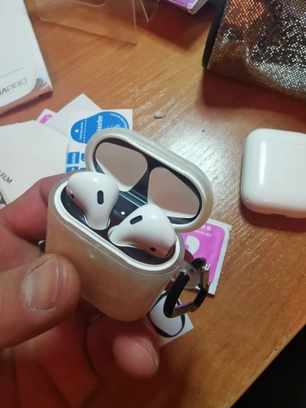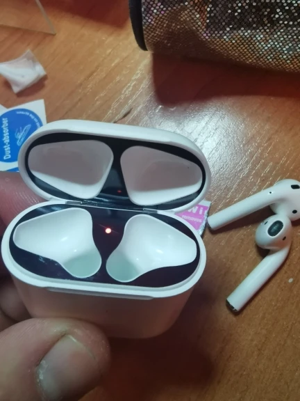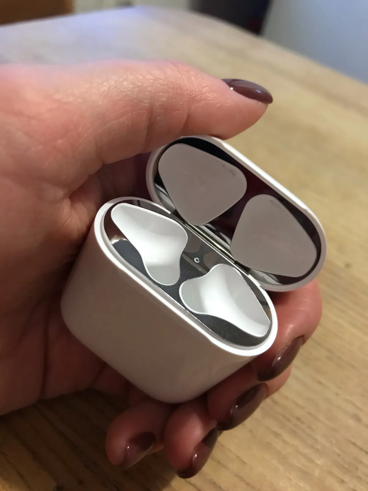 Так и не понял, зачем я это купил. Выглядит прикольно. Наверное что-то защищает. А может и нет. Село хорошо на Airpods 2. Купил золотого цвета, наушники приятно отражаются от поверхности, когда лежат внутри. Для тех, у кого наступил приступ сороки и хочется чего-то блестящего - можно брать. Думал они клеются, как стекло на экран - оказывается магнитятся.