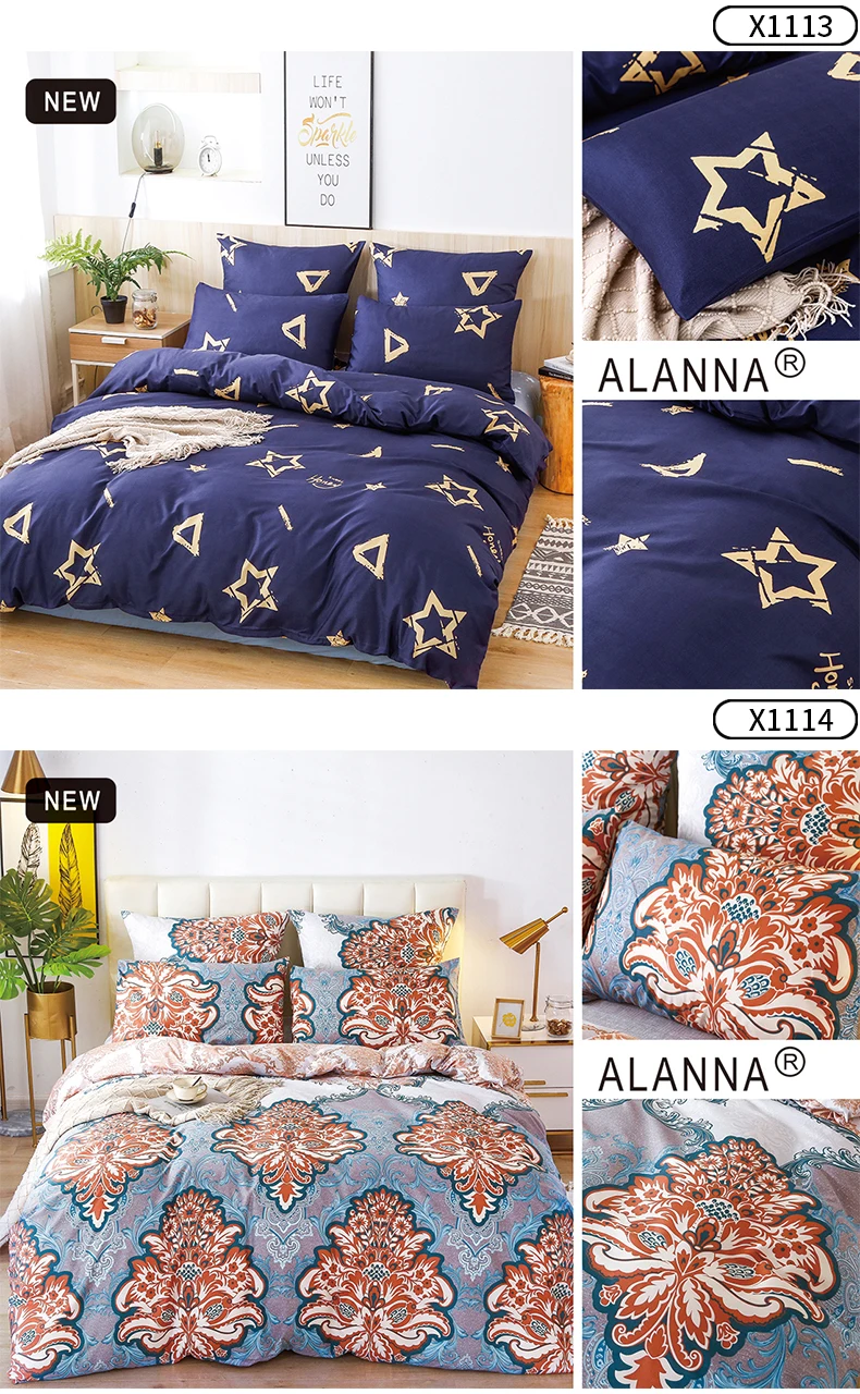 Комплект постельное бельё Alanna X series 3-4, комплект из 4-7 предметов, с принтом в виде звезд, дерева, цветов постельного белья